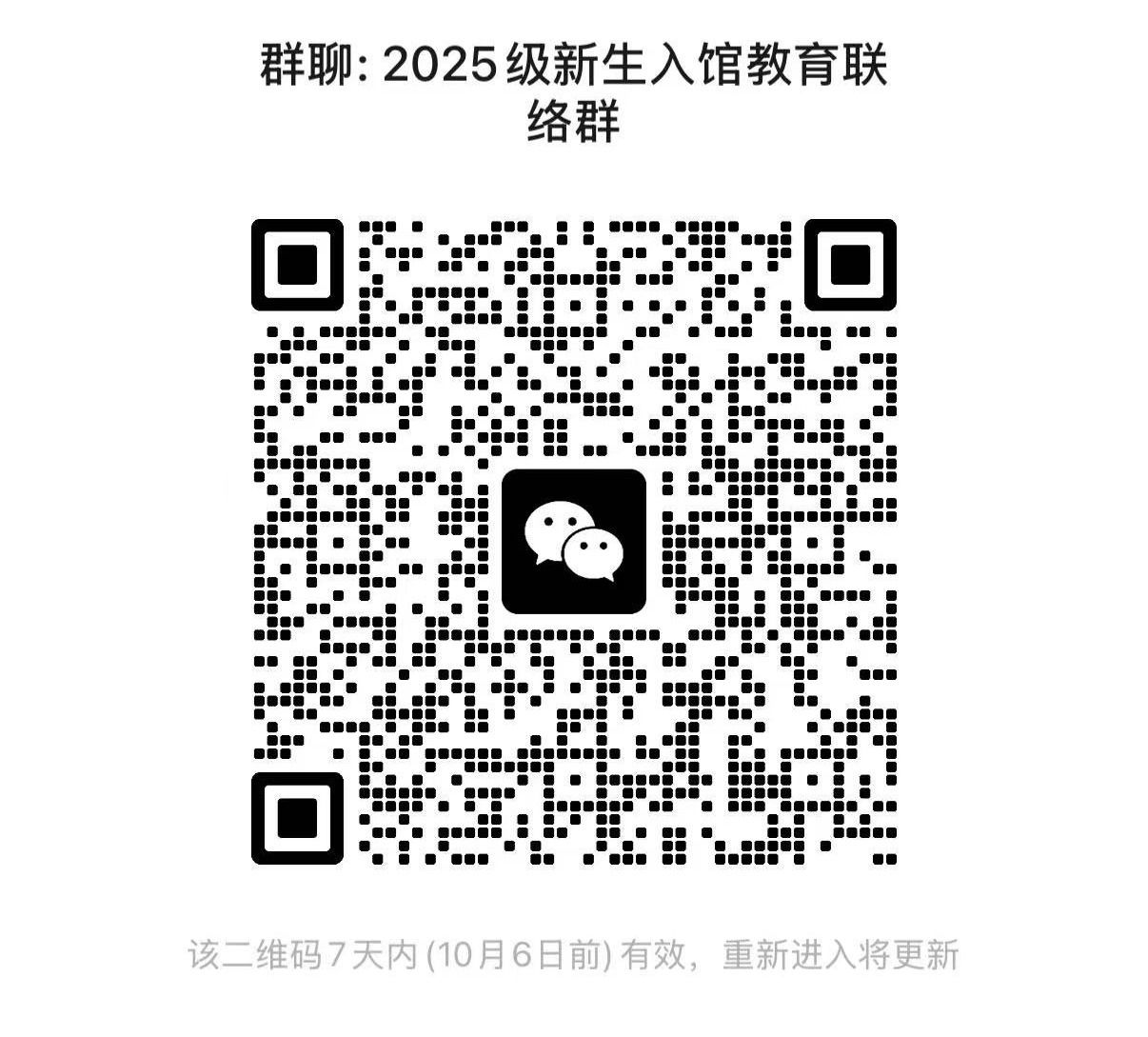 请各二级学院指定一名工作人员加入“2025级新生入馆教育培训联络群”。
