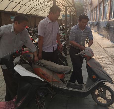 本次活动共清理出废旧车辆30余辆,并将其统一摆放于车棚西侧,特为此在车棚内张贴相关通知,以便车主尽快认领自己闲置的车辆。