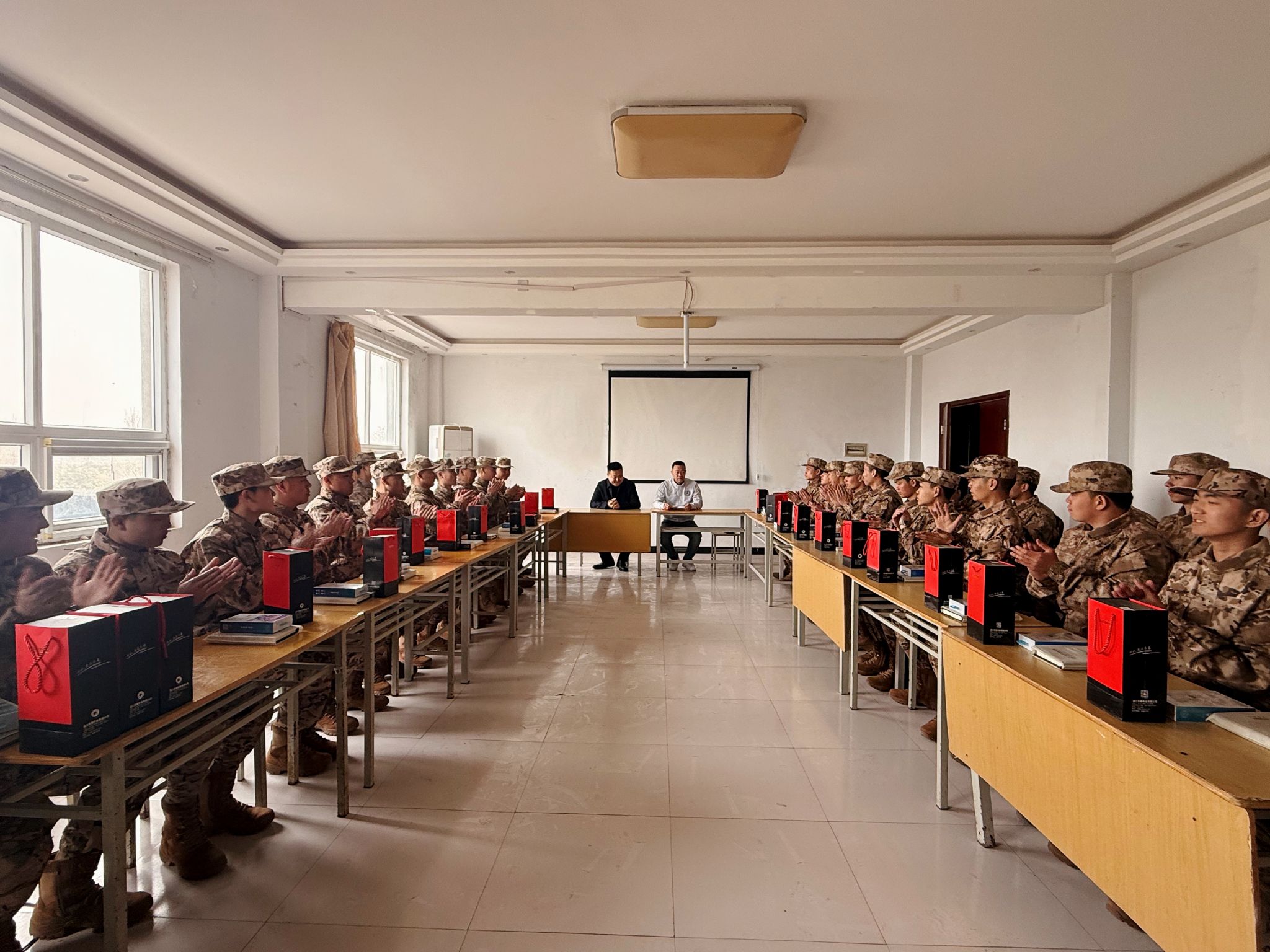 仪式现场气氛庄重而热烈。与会领导共同为每一位入伍新兵发放了精心准备的慰问品,饱含着学校对学子们的深切关怀与美好祝愿。随后,全体入伍新兵与出席领导、老师进行了合影留念,定格下这充满意义的光荣时刻。