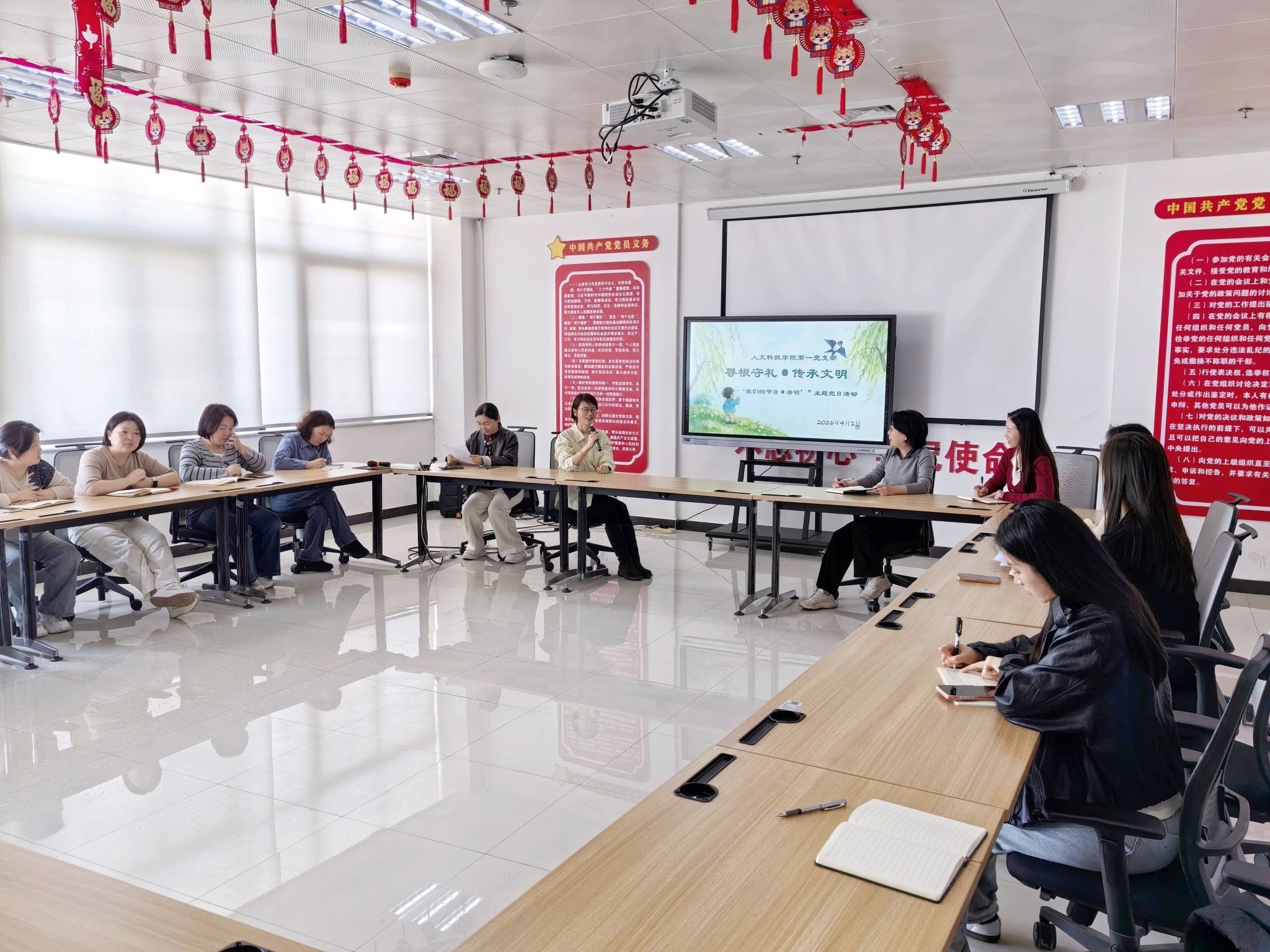 为深入传承中华优秀传统文化,推动党建与学科育人有机融合,4月1日,人文科技学院第一党支部在行政楼705组织开展了“寻根守礼·传承文明——‘我们...