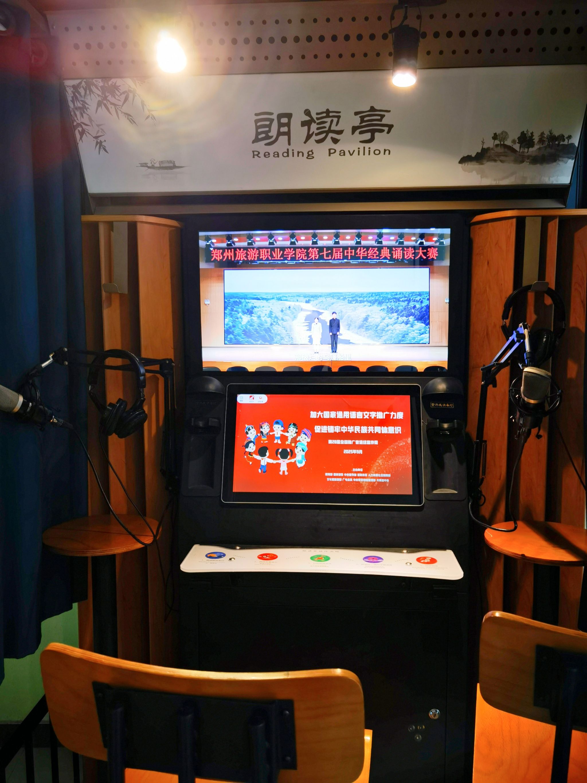 走进校园,推普气息扑面而来。办公楼、图书馆、朗读亭等电子屏幕轮番播放宣传视频,各二级学院的宣传栏也换上“推普新装”,一句句朗朗上口的标语,一张张设计醒目的海报,仿佛在悄悄对每位师生说:今天,你讲普通话了吗?