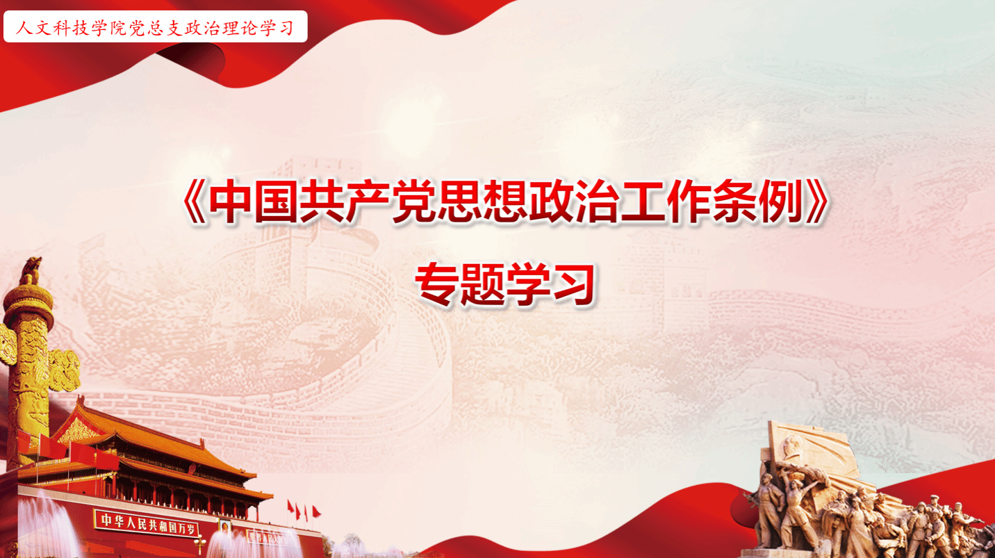 为全面落实党中央关于思想政治工作的最新部署,强化育人实效,10月15日,人文科技学院全体党员专题学习《中国共产党思想政治工作条例》。此次学习由党总支书记李海燕领学。