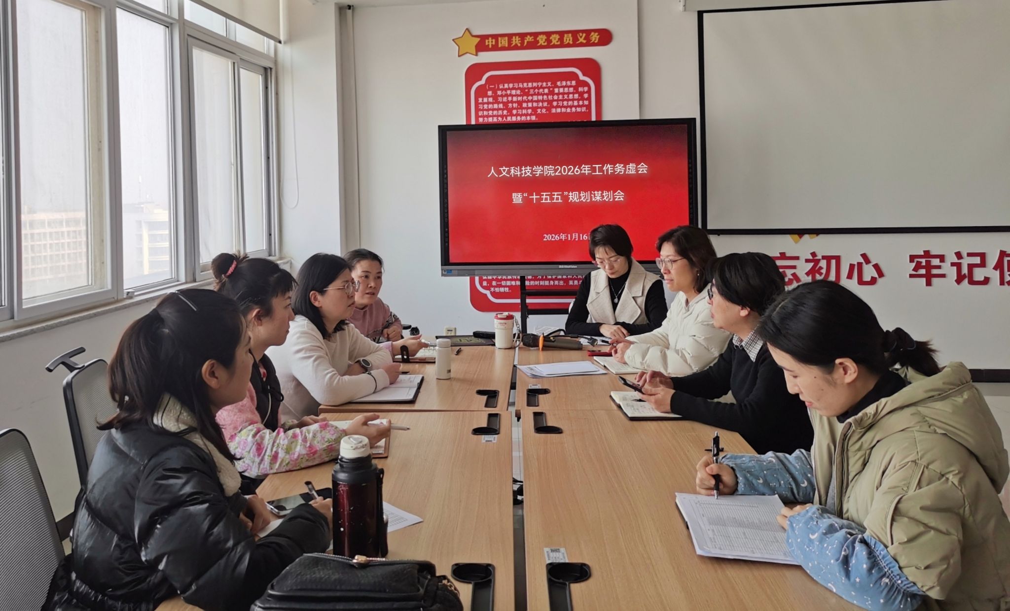 1月16日,人文科技学院在行政楼705会议室召开2026年工作务虚会暨“十五五”规划谋划会。学院党总支委员、教研室主任等全体干部及民主党派代表参加会议。会议由人文科技学院党总支书记李海燕主持。