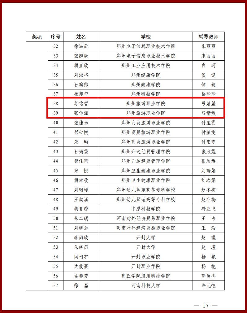 本届大赛由河南省教育厅主办,经各地各校选拔推荐和全省复赛、总决赛,共有来自全省百余所高校的近千名选手同台竞技,角逐激烈。在大学生组比赛中,国际旅游学院2025级学生崔天正凭借扎实的汉字功底和稳健的临场发挥,从众多选手中脱颖而出,斩获一等奖;数字经济学院2024级学生苏铭哲、张学涵沉着应战、表现出色,双双摘得三等奖。