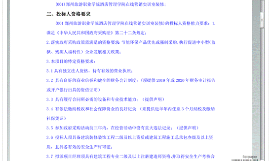 郑州旅游职业学院酒店管理学院在线营销实训室装修竞争性磋商公告