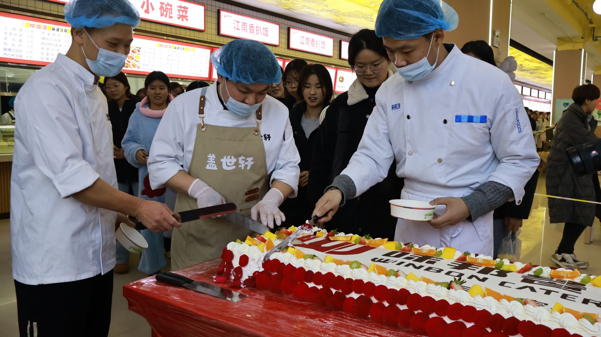 活动伊始,后勤处副处长刘海涛发表了温暖真挚的致辞。他首先代表学校,向辛勤耕耘的全体教职工和努力求学的同学们致以诚挚的问候,并向精心筹备此次活动的味邦餐饮及所有工作人员表示衷心感谢。刘海涛致辞中动情地表示:“今晚,我们不仅仅是在品尝一块蛋糕,更是在分享一份诚挚的谢意,传递一种温暖的关怀。学校一切工作的核心永远是‘人’,你们的健康、快乐与幸福感,始终是学校最深切的牵挂。”他希望通过这场在“家一般”的餐厅里举办的活动,能让师生们在紧张的学期末暂歇脚步,感受校园大家庭的温暖与甜蜜。致辞结束后,激动人心的时刻到来。