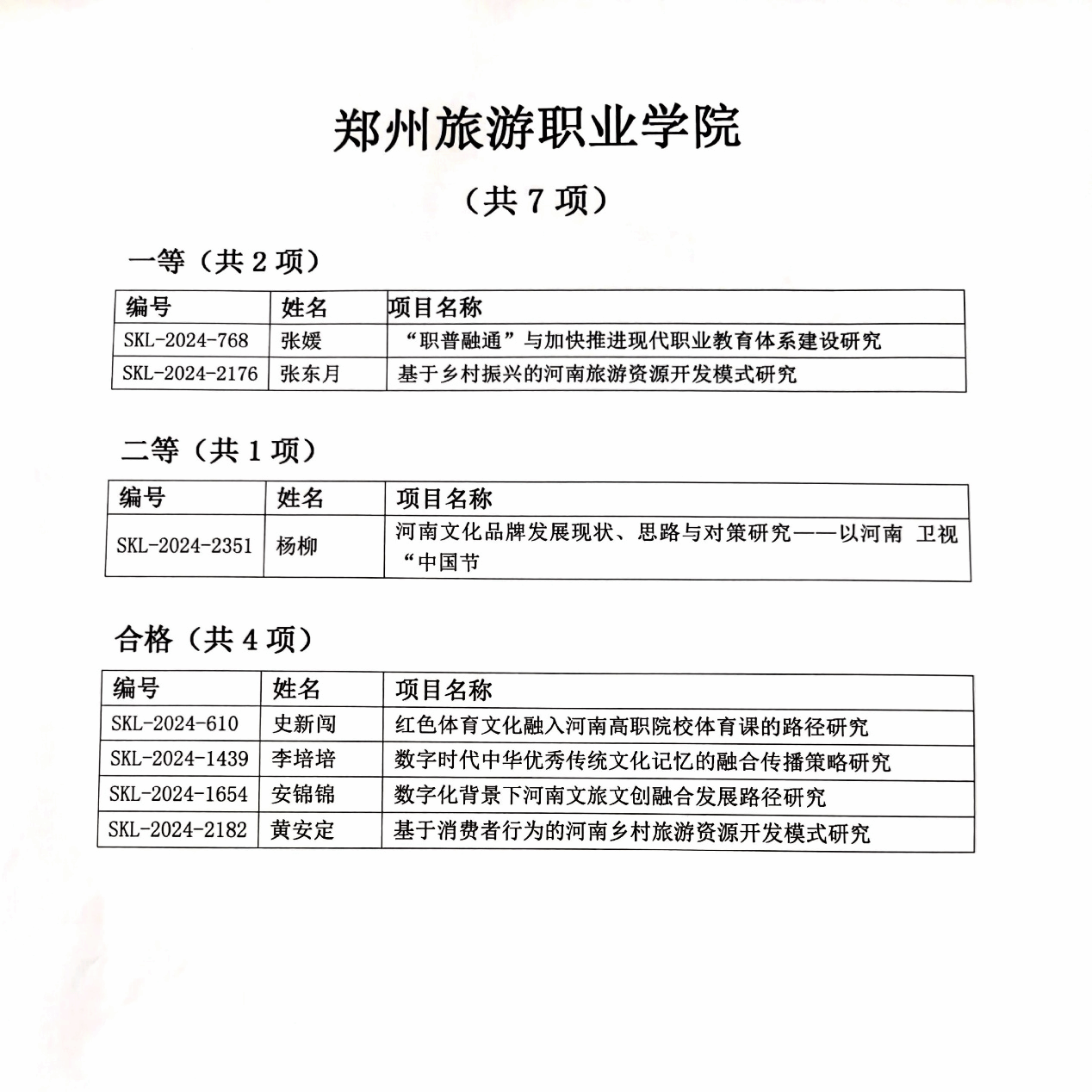 根据《河南省社会科学界联合会关于2024年度调研课题评审情况的通知》(豫社科联字〔2025〕16 号),我校7项成果通过评审。具体如下: