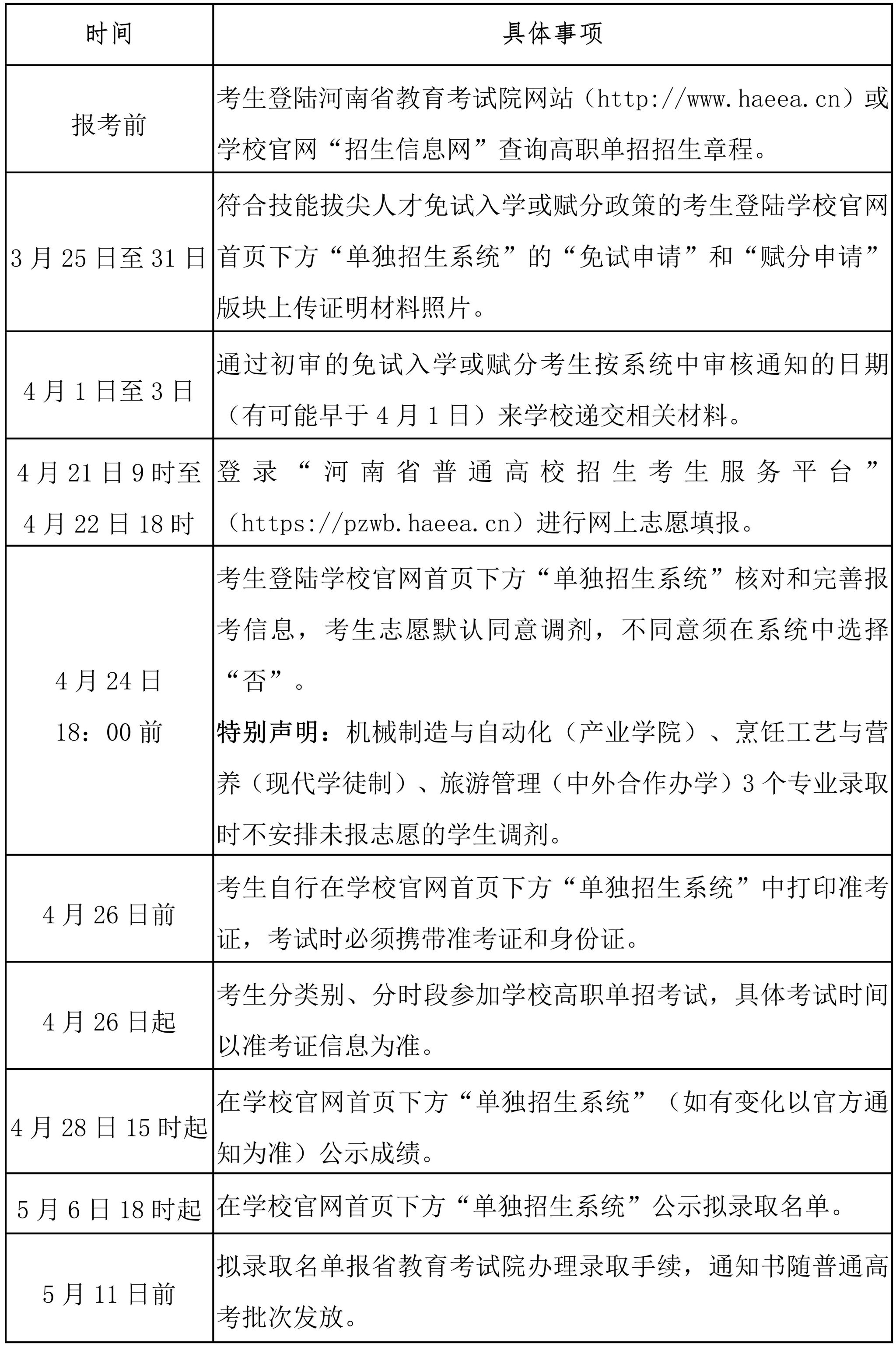第二十二条 采取“文化素质+职业技能”方式,分考生类型、考试内容、时段组织考试并计分。考试地点均在郑州市郑东新区金龙路188号(郑州旅游职业学院象湖校区)。