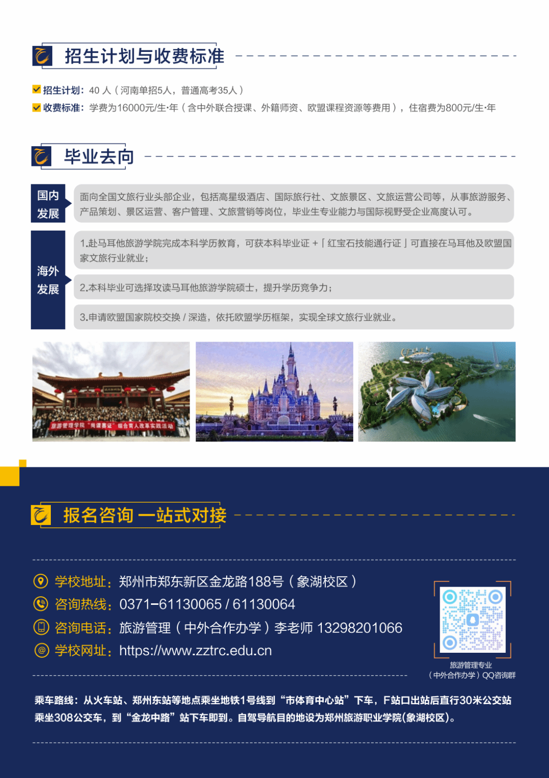 2026招生专业介绍 郑州旅游职业学院旅游管理学院——旅游管理专业(中外合作办学)招生简章