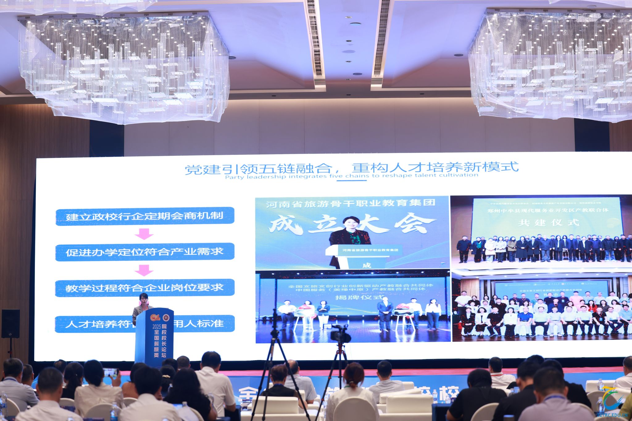 在“2025 全国餐旅类院校校长论坛”现场,王艳红以《深化“五链”融合 服务文旅产业高质量发展》为题作主旨报告,围绕“紧扣产业发展新需求重构专业体系”、“党建引领‘五链’融合创新育人模式”、“对接现代化战略拓宽服务路径”三大维度,分享学校餐旅类专业建设的特色实践。此外,团队还参与政策解读、典型案例研讨环节,调研重庆旅游职业学院实训基地及当地餐饮企业,为进一步优化“五链”融合路径汲取借鉴。
