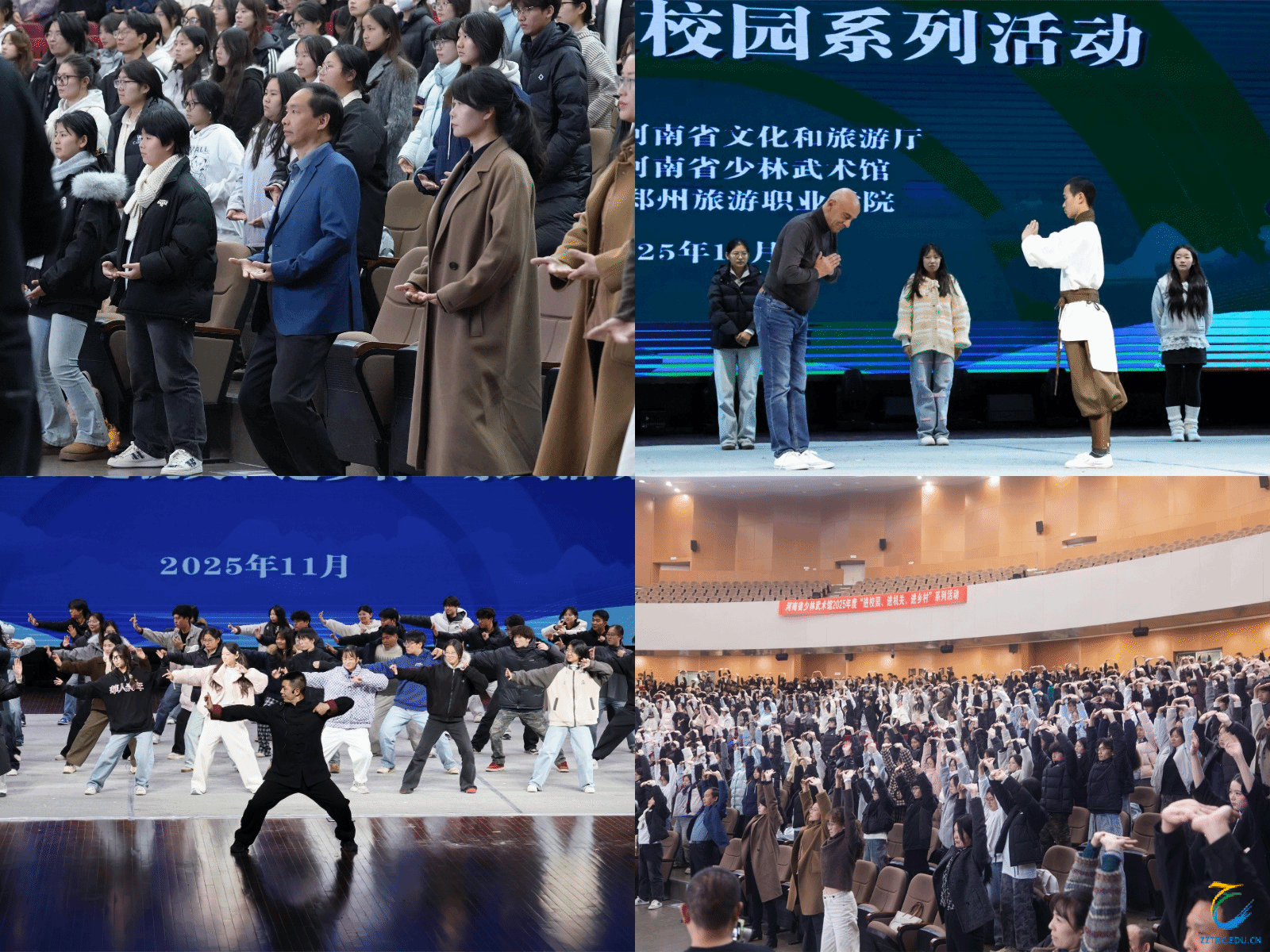 “马步扎稳,出拳要带劲!”11 月 19 日下午,郑州旅游职业学院象湖校区艺术中心内喝彩声此起彼伏 —— 由河南省文化和旅游厅指导、河南省少林武术馆主办的“少林功夫进校园”系列活动拉开帷幕。校党委书记王艳红、校长肖世才与河南省少林武术馆馆长陈俊杰携团队出席,千余名师生沉浸式解锁“功夫+文旅”的青春表达,让中华优秀传统文化在校园里“活”起来、“潮”起来。