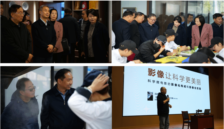 颁奖典礼过后,参会领导走进专业实训室和学生的课堂,观摩学生的技能展示,与学生进行互动,密切交流;特邀行业专家吕尚伟教授以《影像让科学更美丽--科学微电影的影像化构成和影像化实现》为主题开展讲座,强调科学影像需兼顾“准确性”与“趣味性”,肯定青年创作者为科学传播注入新活力。