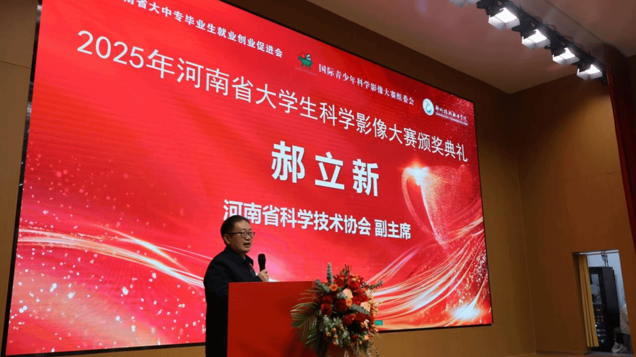 11月28日上午,由河南省大中专毕业生就业创业促进会、国际青少年科学影像大赛组委会联合主办,我校承办的2025河南省大学生科学影像大赛颁奖典礼在2号教学二楼B座报告厅隆重举行。省科协党组成员、副主席郝立新、河南省人大制度理论研究会副会长李经超、国际青少年科学影像大赛组委会主席姜冬梅博士等领导,我校党委书记王艳红、校长肖世才、纪委书记莫方勇与获奖师生代表、行业专家齐聚一堂,共同见证这场以光影为桥、串联科普、创新与就业的青春盛会。颁奖典礼由河南省大中专毕业生就业创业促进会会长岳修峰主持。