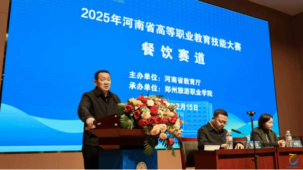 2025年12月15日下午,由河南省教育厅主办、郑州旅游职业学院承办的2025年河南省高等职业教育技能大赛(餐饮赛道),在我校2号教学楼礼堂开幕。河南省教育厅二级调研员平奇,中国餐饮服务大师、桂林旅游学院刘澜江教授,郑州旅游职业学院党委书记王艳红、副校长张建军、教务处处长胡红梅等出席开幕式,开幕式由张建军主持。