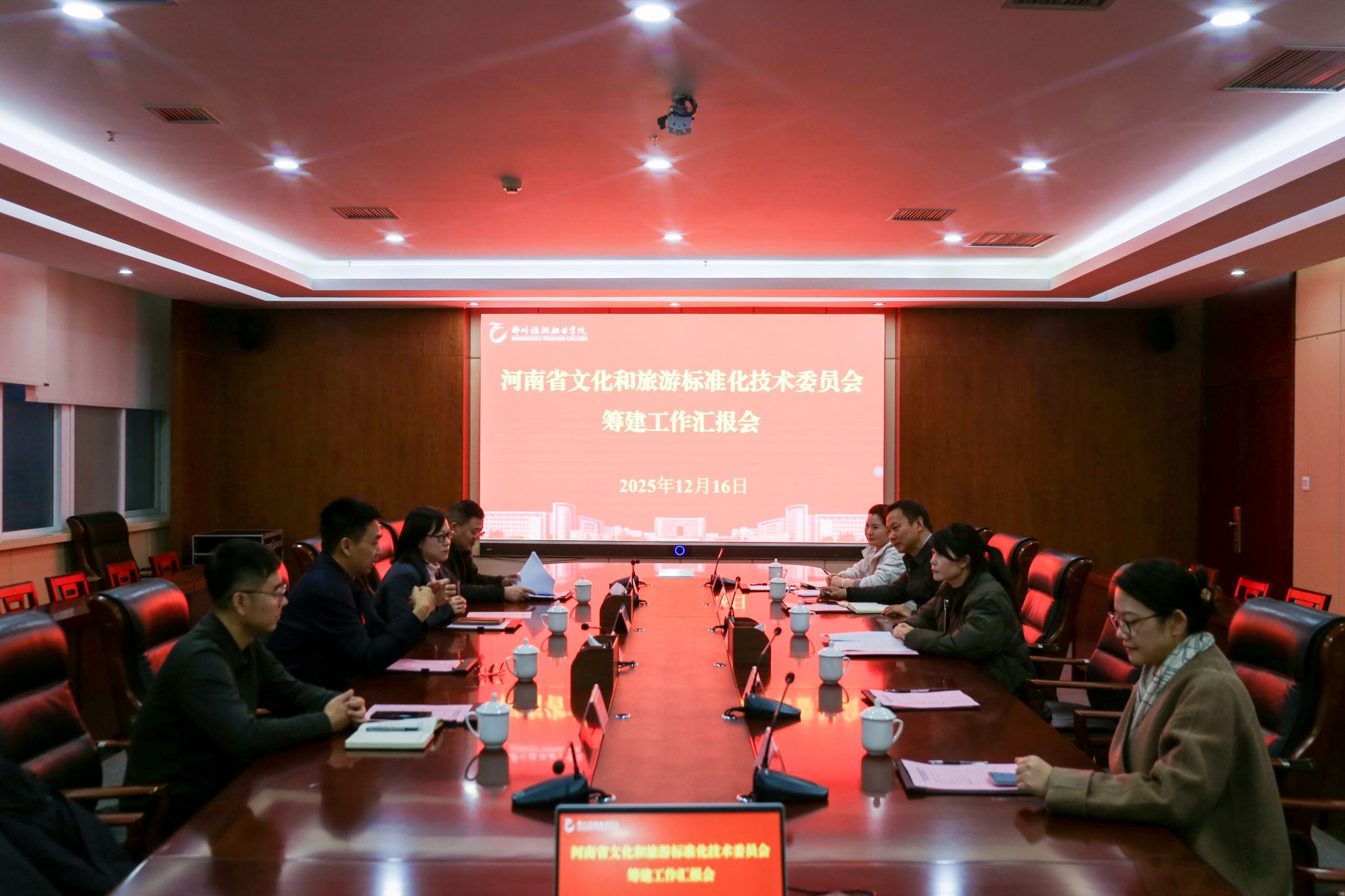 为加快推进我省文化和旅游标准化体系建设,以高标准引领文旅产业高质量发展,12月16日下午,河南省市场监督管理局标准化处处长赵锋、一级主任科员王志豪、省文化和旅游厅科技教育处处长王亚斐、副处长李士勇一行莅临我校,调研河南省文化和旅游标准化技术委员会(以下简称“省文旅标委会”)筹建工作情况。校党委书记王艳红、副校长张建军、合作发展处处长朱宇、科研外事处处长李俊、文化和旅游产业发展研究中心主任孙亚辉陪同调研。