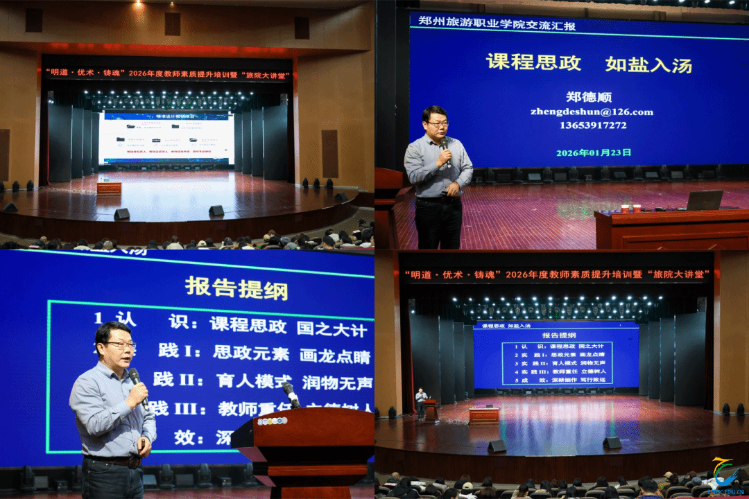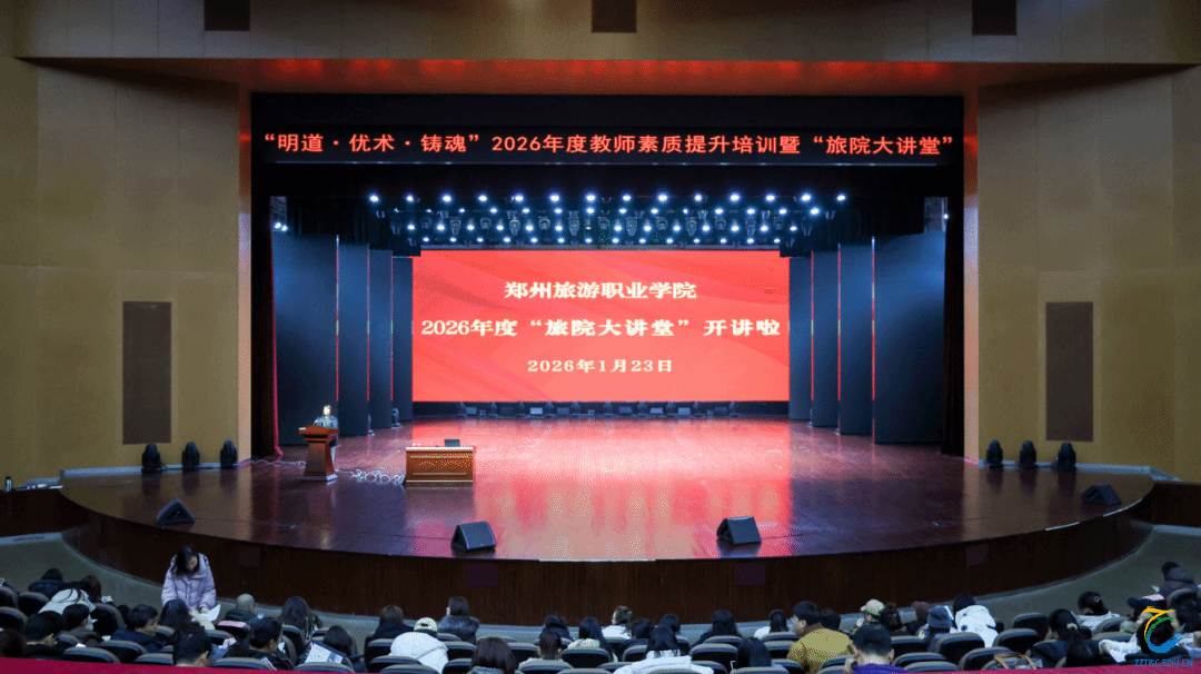 为全面落实立德树人根本任务,持续加强师资队伍建设,全面提升全体教职工思想政治素质、教育教学能力和育人水平,1月23日,我校“明道·优术·铸魂”2026年度教师素质提升培训暨“旅院大讲堂”启动仪式在艺术中心隆重举行,全体教职工参加本次培训。