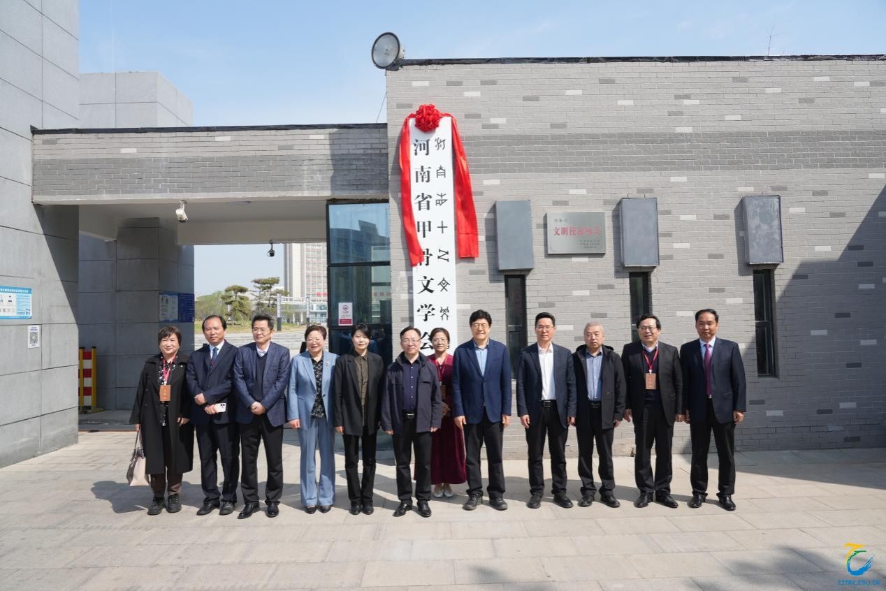 李庚香、任伟、郑邦山、顾万发、叶光林、何宏波、王艳红、曹建墩等共同启动成立仪式,宣布河南省甲骨文学会正式成立。随后,参会领导、嘉宾和会员移步至郑州旅游职业学院南门集体合影,李庚香、任伟、郑邦山、王艳红、肖世才共同为学会揭牌。与会领导、嘉宾还一同参观了落户于郑州旅游职业学院的学会办公机构及学校部分专业实训室,对郑州旅游职业学院的会务筹备工作、实训教学成果以及为学会提供的优越办公条件给予高度评价。