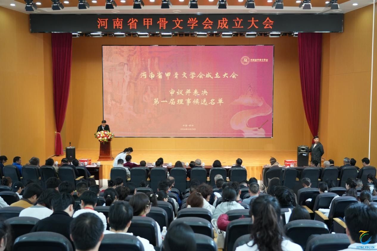 3月29日,河南省甲骨文学会成立大会暨第一届一次会员大会在郑州旅游职业学院隆重举行。本次大会由河南省民政厅、河南省文物局指导,河南大学、河南省甲骨文学会主办,郑州旅游职业学院承办。学会办公机构正式落户郑州旅游职业学院,标志着该校在推动甲骨文研究、传承与活化利用方面迈出坚实一步。