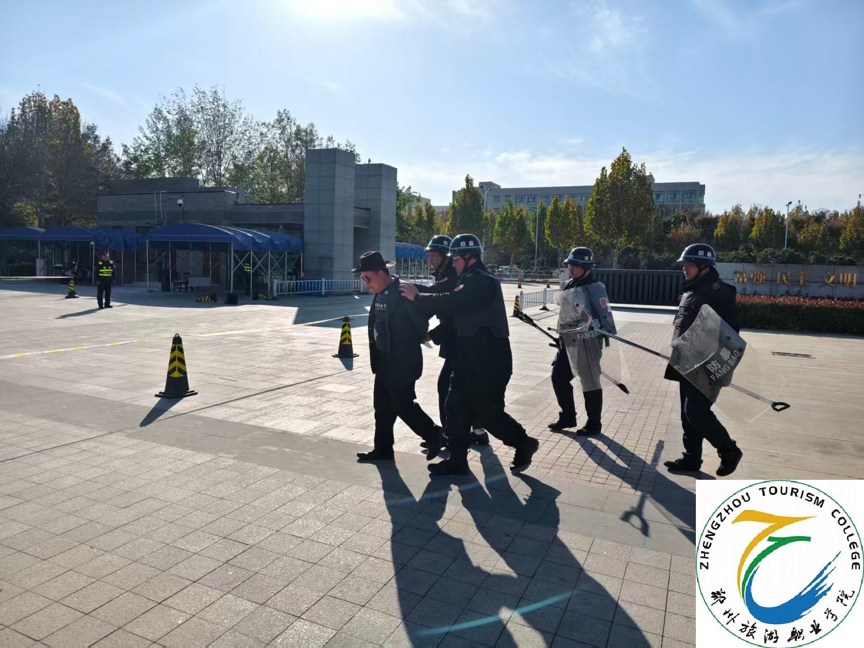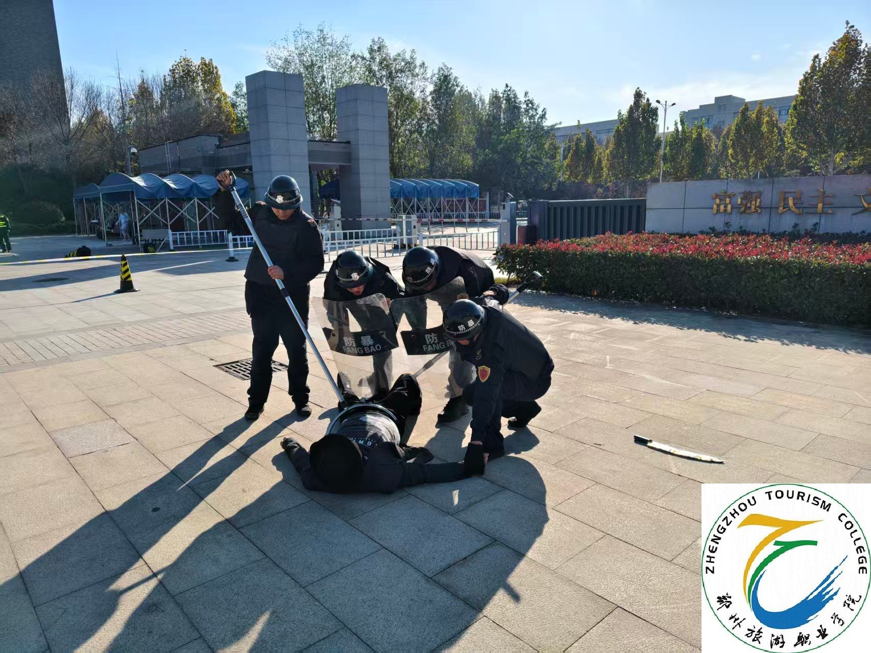 为切实提升校园应对突发恐怖暴力事件的应急处置能力,维护安全稳定的教育教学环境,我校于11月22日在南门开展校园实景反恐应急演练。