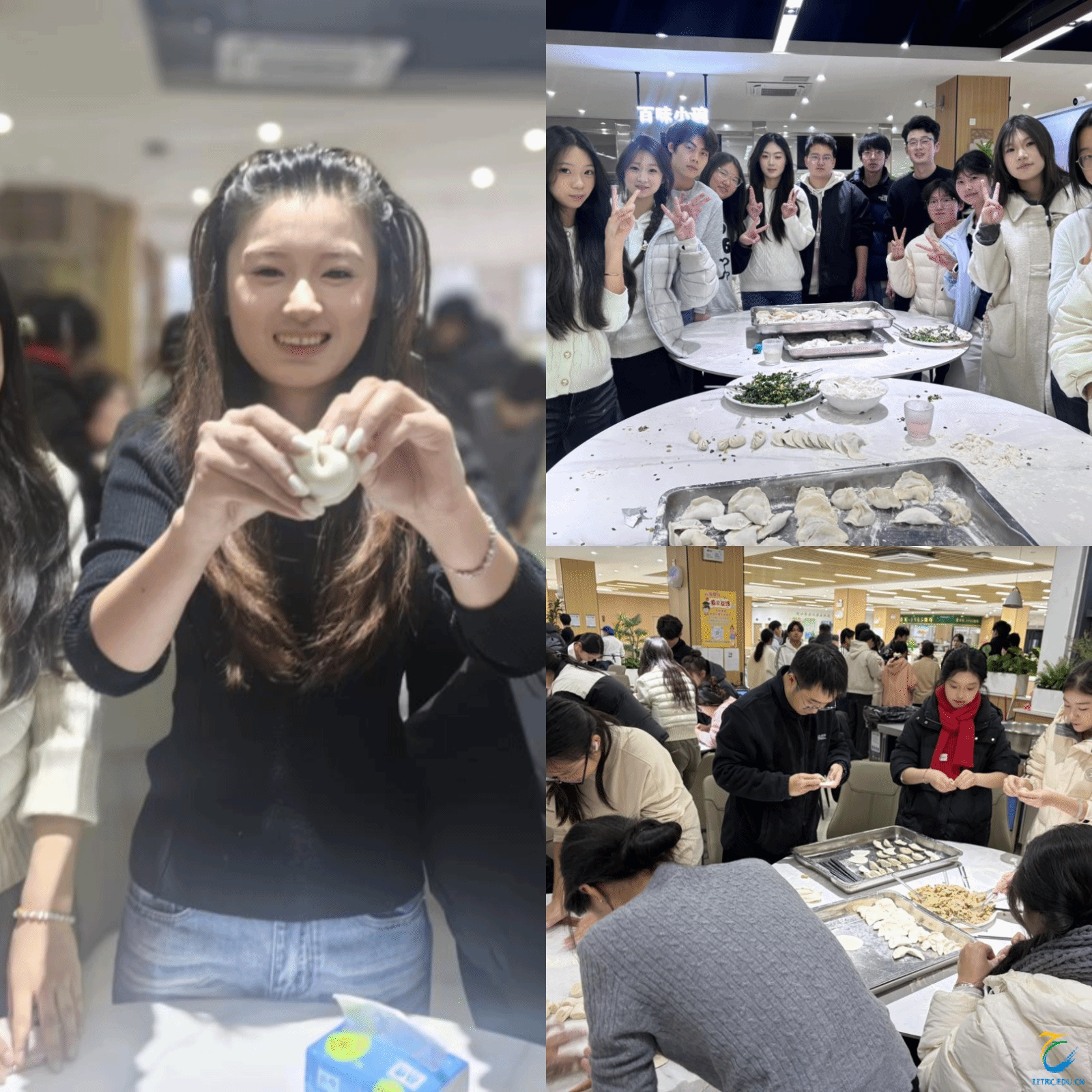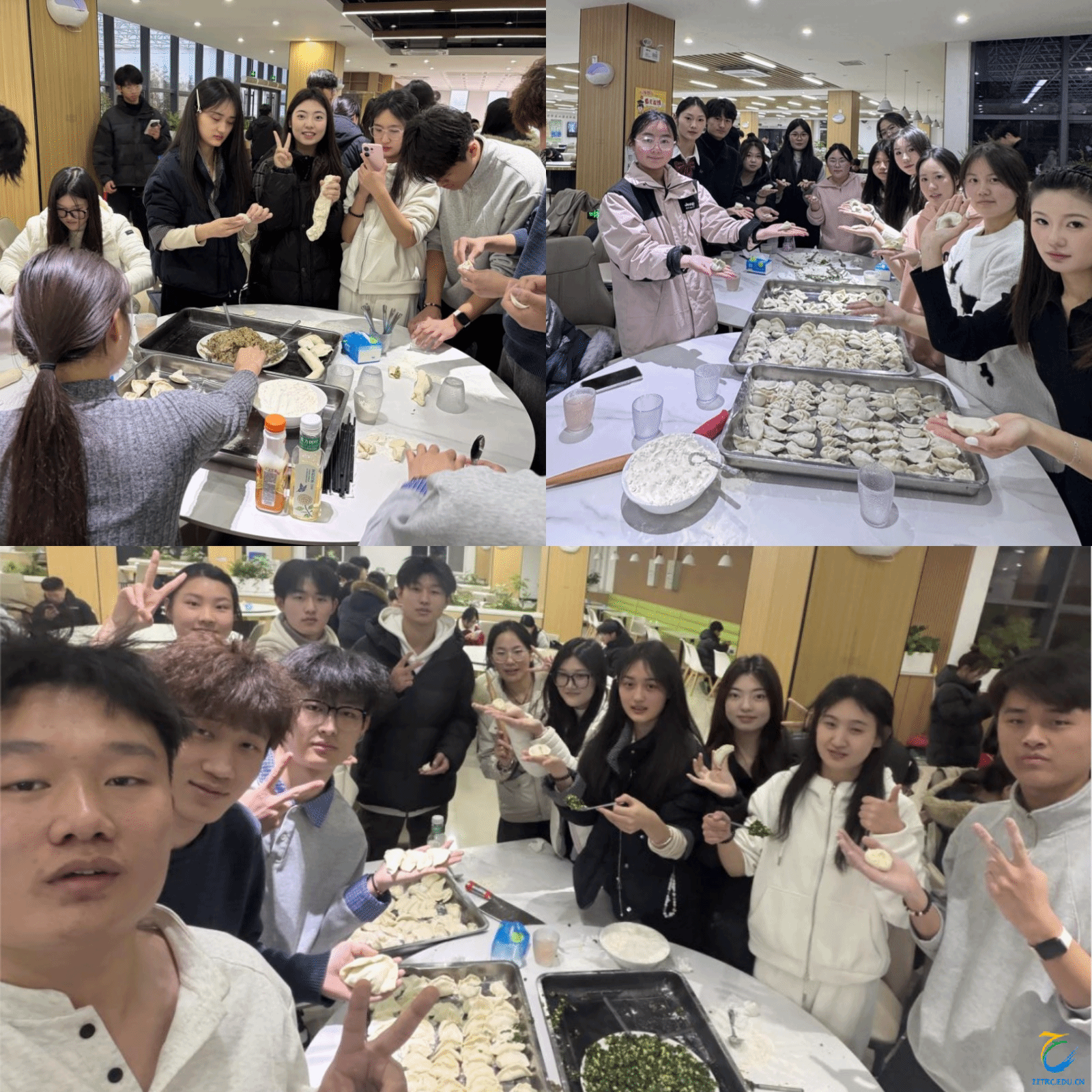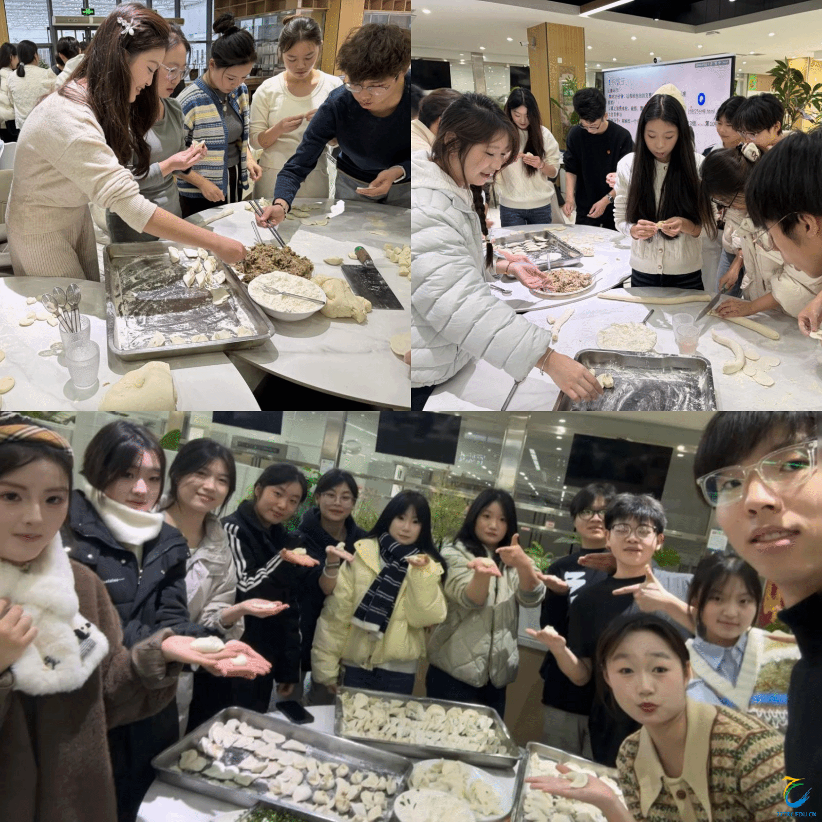 活动现场暖意融融,师生们围拢在一起,揉面、擀皮、包馅,配合默契、有条不紊。同学们热情高涨,熟练者动作麻利、驾轻就熟,初次尝试者虽略显笨拙,却在互相打趣、彼此帮扶中渐入佳境。形态各异的饺子摆满托盘,每一枚都包裹着师生的创意与心意,承载着对冬日团圆的美好期许。