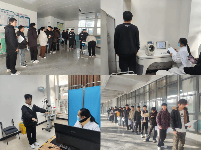 初检现场秩序井然,工作人员严格按照征兵体检标准和流程,对应征青年进行身高体重测量、血压检测、视力筛查、外科检查等多项检查。校卫队全程陪同,为应征学生提供暖心服务。