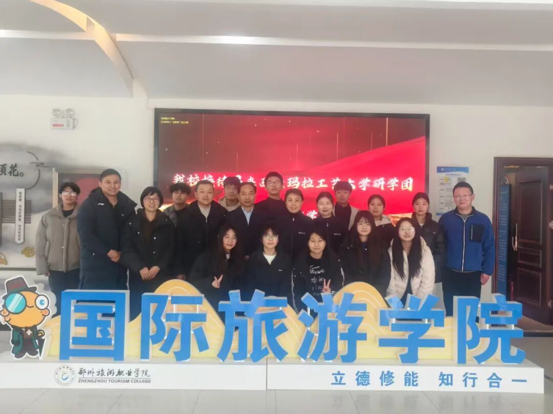 1 月 9 日,国际旅游学院2012届优秀毕业生、现任中德职业教育产教融合联盟中方秘书处办公室主任王湘茜,重返母校,在清源楼茶艺实训室与学弟学妹们展开了一场生动鲜活、启迪心智的深度对话。中德职业教育产教融合联盟中方秘书处秘书长刘宇、常务副秘书长李杏丽、副秘书长杨植,郑州旅游职业学院校长肖世才、副校长张建军、国际旅游学院院长刘瑞娜、部分教师代表以及24 级应用德语专业1班全体同学共同参与了此次活动。