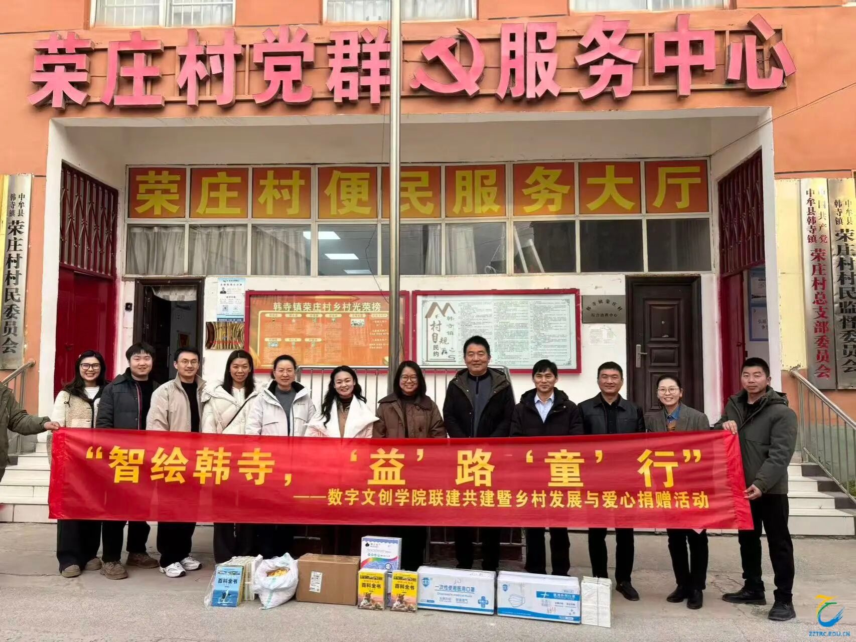 为深化合作情谊,赋能乡村发展,2026年1月14日,数字文创学院党总支书记杨慧丽、副院长李培一行8人,赴中牟县韩寺镇荣庄村,开展“智绘韩寺,‘益’路‘童’行”联建共建暨乡村发展与爱心捐赠活动,以实际行动践行社会责任,为乡村振兴注入温暖动能与智力支撑。