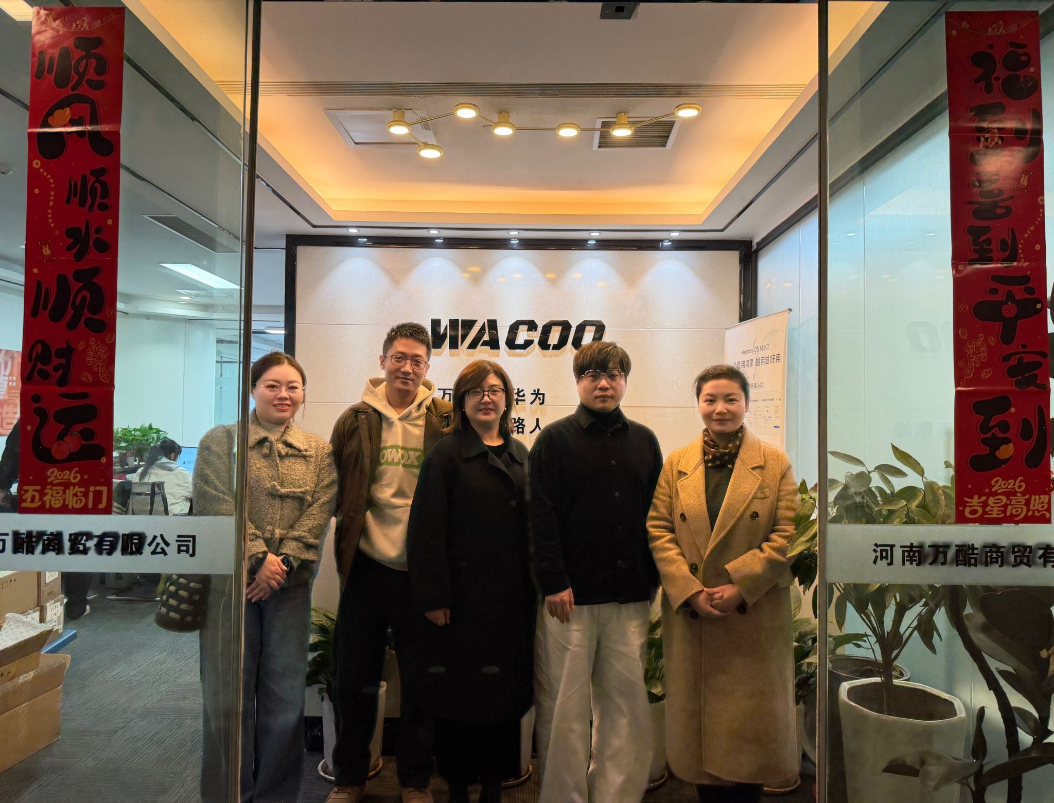 为深化产教融合,提升市场营销专业人才培养质量,2026年3月17日下午,在数字经济学院副院长李文娟的带领下,实习就业办公室主任戴鹏、数字与新媒体教研室主任李颖,以及骨干教师朱琳、杨祎、侯怡琳一起走进河南万酷商贸有限公司开展走访交流活动。