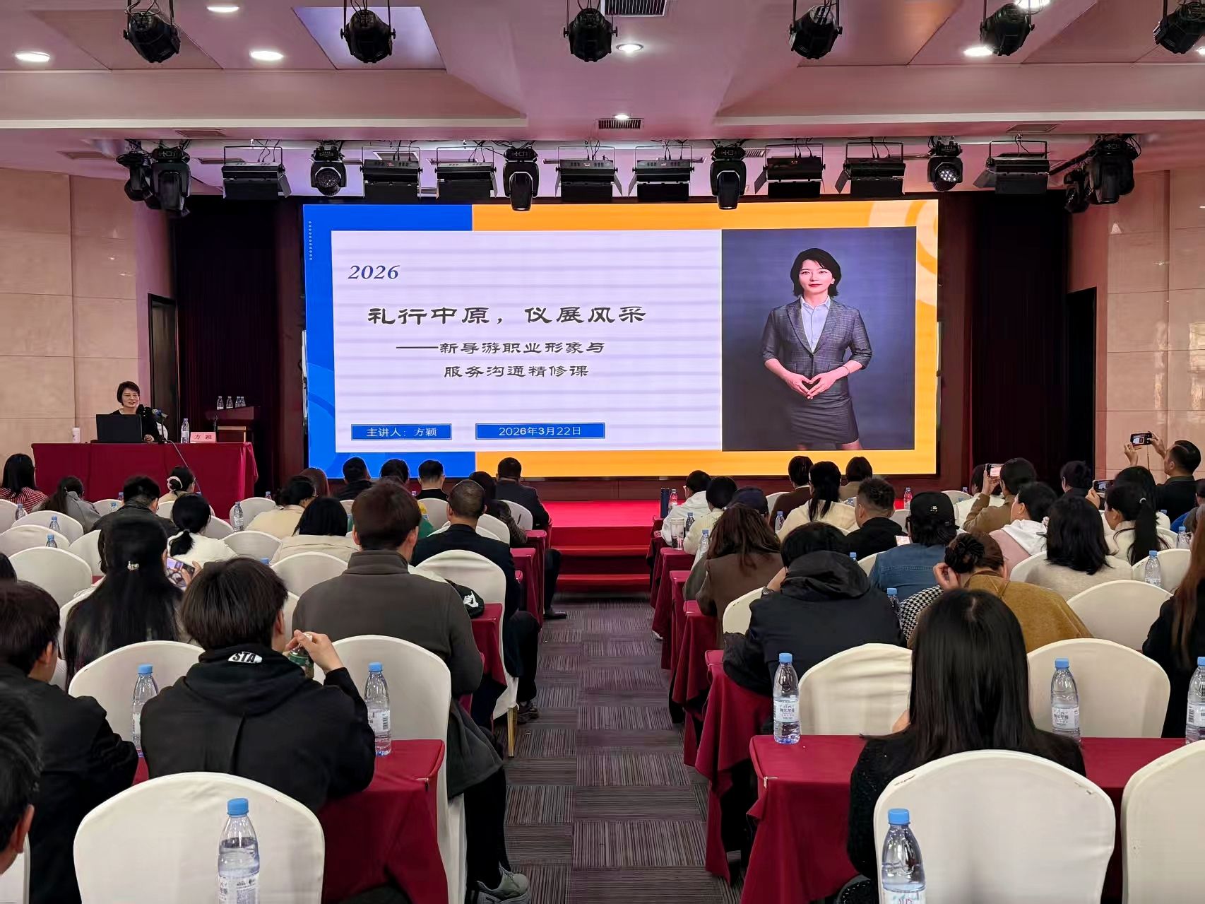 3月21日-22日,河南省旅游协会导游分会成功举办2026年新导游岗前培训。人文科技学院院长、河南省旅游协会导游分会会长张楗让出席活动并作开班动员讲话。人文科技学院礼仪教研室主任方颖教授受邀为全体新入职导游进行了系统、专业的职业礼仪培训,助力提升我省新晋导游的综合服务素养。