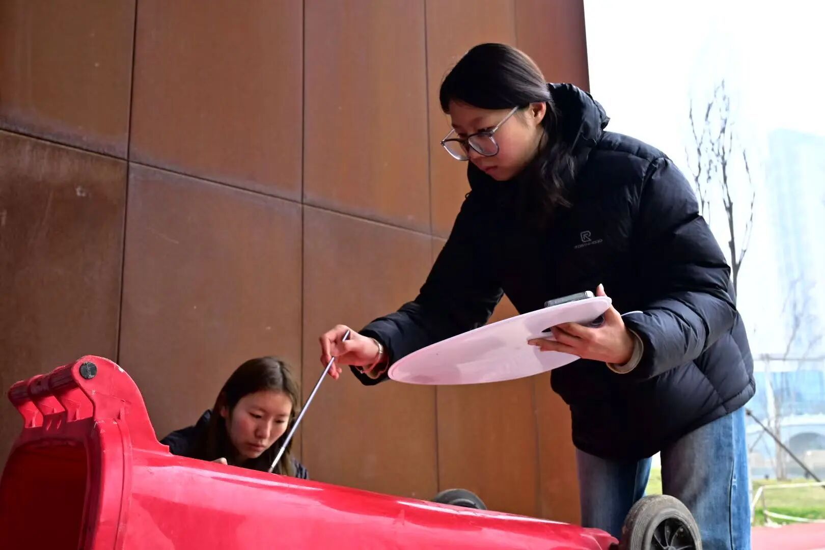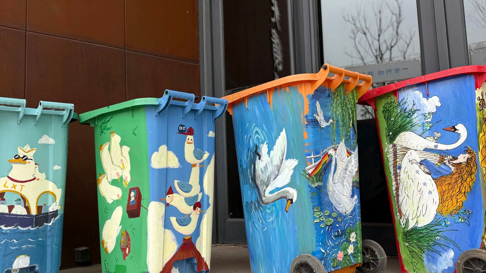 活动中,我院师生充分发挥专业优势,将志愿服务与专业实践紧密结合,开展图案构思与色彩搭配研讨,精心设计出多款美观的图案方案,整个志愿服务活动中,师生们始终秉持着吃苦耐劳、团结协作的志愿精神,全身心投入到垃圾桶美化工作中。从清理垃圾桶表面污渍、打磨基底,到勾勒线条、填充色彩、细节修饰,每一个环节大家都一丝不苟、精益求精。过程中,老师悉心指导绘画技巧与色彩搭配,同学们分工明确、配合默契,在协作中增进默契,在实践中提升专业能力,用汗水与匠心,让一个个原本普通的垃圾桶变成了校园里精致的“艺术小品”。