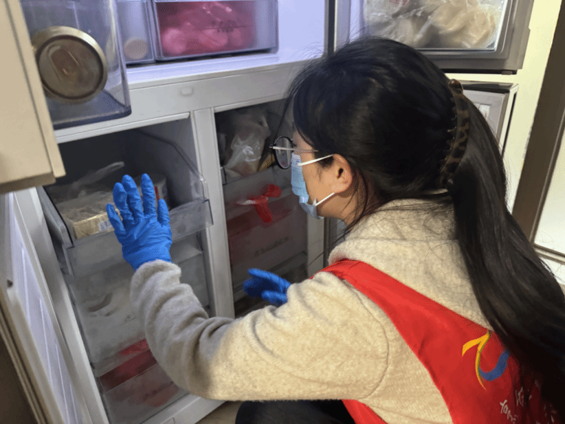 活动现场,“红小厨”志愿服务队迅速行动起来,首先戴好口罩、手套和鞋套,做好活动准备,然后走进居民家中开展示范指导。他们开展冰箱食材存放科学分类宣传,耐心指导居民将生食与熟食、果蔬与肉类、即食与半成品分层摆放,让冰箱内部井然有序。