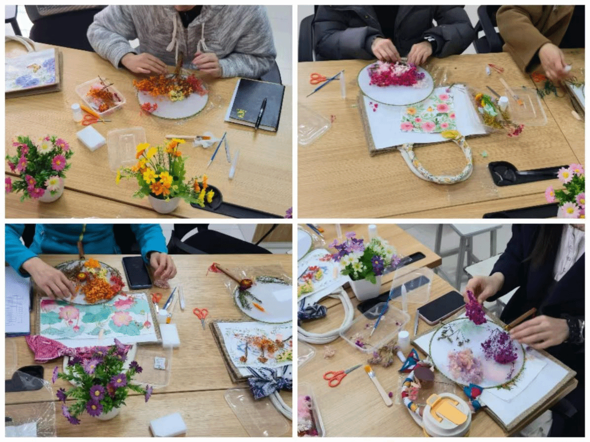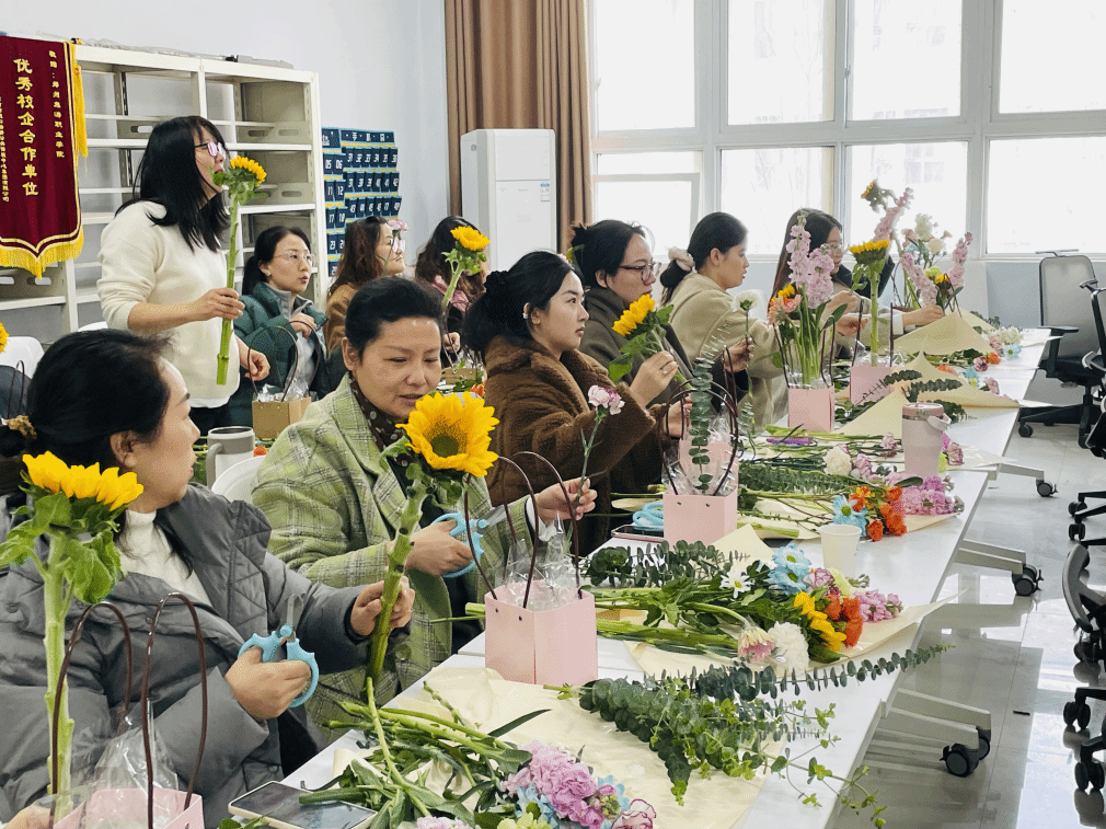 此次妇女节系列活动兼顾趣味性、艺术性与健身性,涵盖插花艺术、鲜花扇子DIY、踢毽子、健步走、八段锦等多种形式,满足了女教职工多样化的精神文化需求。在花艺创作活动现场,花香弥漫,氛围温馨,女教职工们围坐在一起,在花艺老师的悉心指导下,认真学习插花技巧,精心挑选花枝、修剪造型、搭配色彩,将一朵朵娇艳的鲜花巧妙组合,一件件错落有致、独具匠心的花艺作品应运而生,大家在动手创作中感受花艺之美,舒缓工作压力,尽享慢时光的惬意。