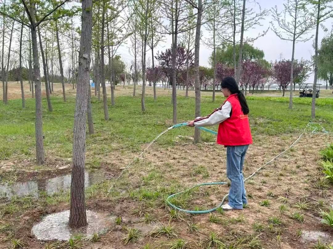 春染大河,绿满中原。为牢记习近平总书记关于黄河流域生态保护和高质量发展的重要嘱托以及响应"青春'绿'动 和谐共生"黄河流域生态保护省级示范活动、全省“河小青”增绿护水行动号召。4月4日,酒店管理学院"阳光麦穗"社会实践团队20名志愿者,在学院党总支副书记侯宁波带领下走进郑州黄河文化公园,以植绿护绿、文明引导的实际行动守护母亲河。