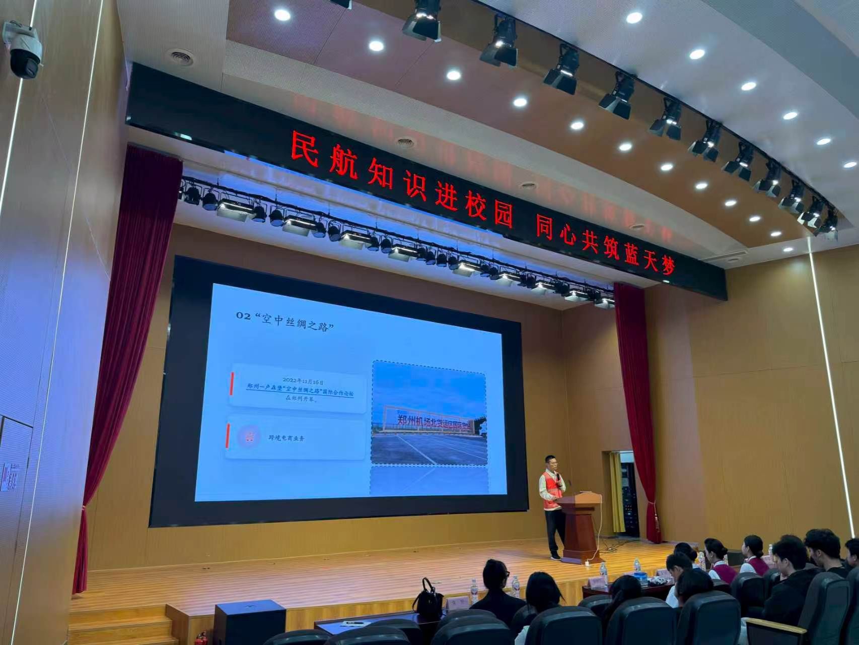 郑州机场指挥中心工程师王松涛,以机场运行指挥为核心,用通俗的语言讲解了机场调度流程、航班保障细节,结合实际案例拆解了智慧机场建设中的技术应用,让学子们直观了解到机场运行背后的专业支撑。