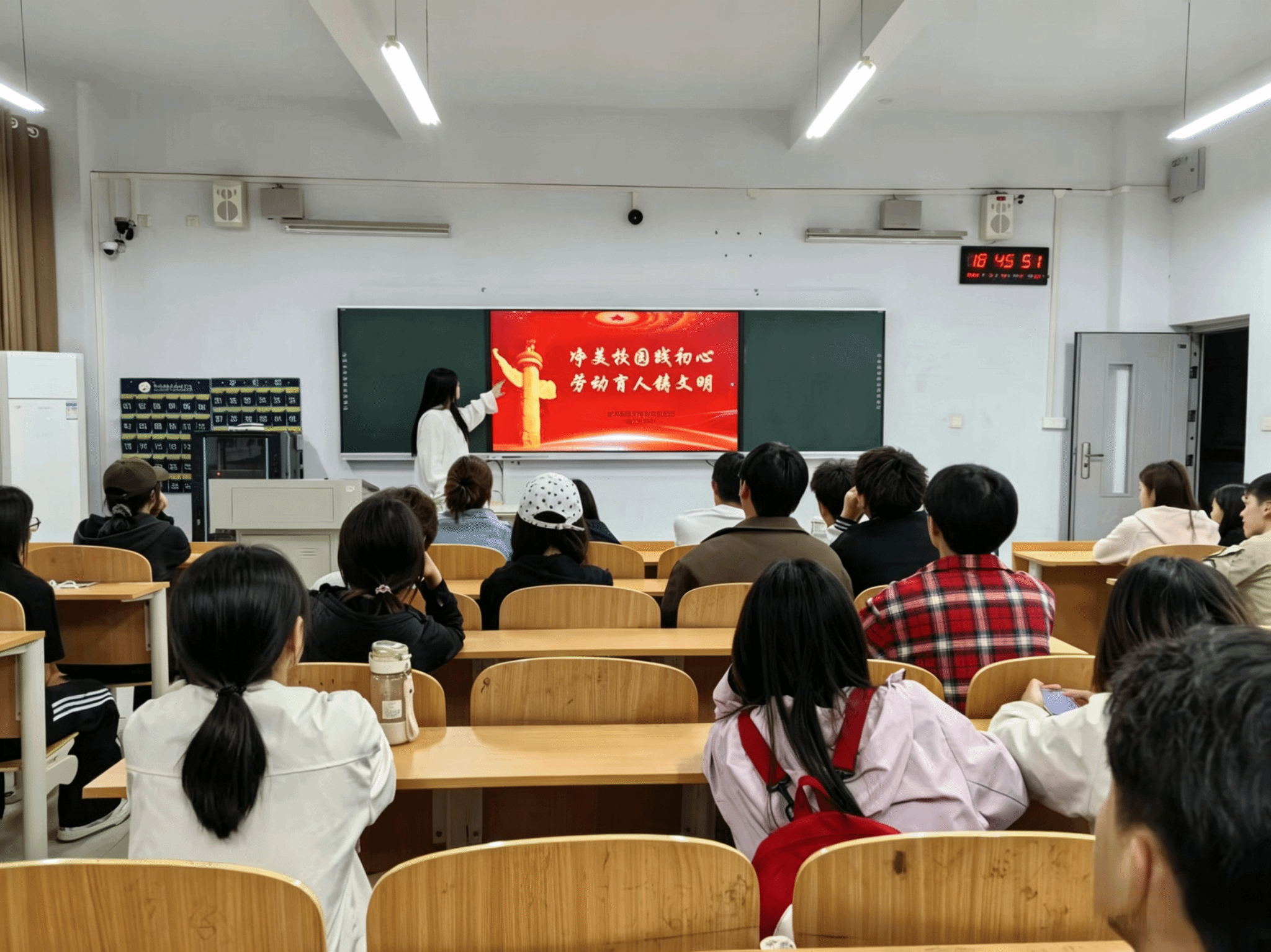 随后,全体入党积极分子迅速开展劳动实践,重点对教学楼空教室、楼道等区域进行彻底清扫。大家分工协作、认真细致,清理垃圾、擦拭公共设施、整治卫生死角等,以实际行动践行服务宗旨,使教学楼的环境焕然一新。党支部强调,入党积极分子要持续加强党性修养、锤炼优良作风,始终以党员标准严格要求自己,把理论知识学深悟透,把先锋模范作用落在日常,在学习上刻苦钻研、在生活中文明自律、在集体中主动作为,以实际行动接受党组织考验。