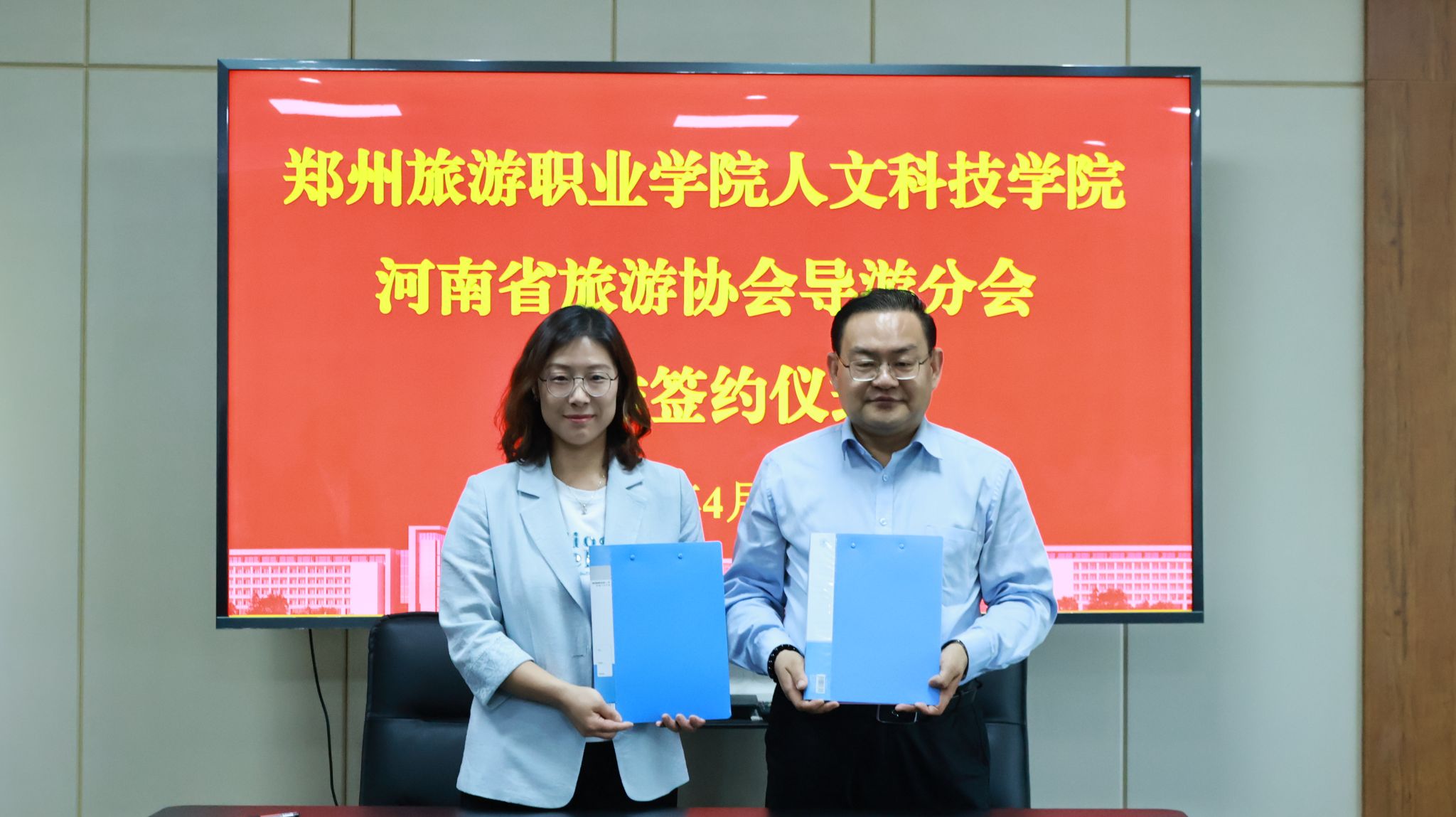 4月23日上午,郑州旅游职业学院人文科技学院与河南省旅游协会导游分会合作签约仪式在学校行政楼三楼会议室举行。郑州旅游职业学院党委委员、副校长张建军,人文科技学院院长张楗让、党总支书记李海燕、副院长定琦,河南省旅游协会导游分会常务副会长兼秘书长王猛、副会长史耀勋、副会长刘斌、名导工作室代表吴雯娴等双方代表出席仪式。仪式由人文科技学院院长、河南省旅游协会导游分会会长张楗让主持,学院全体干部参加仪式。