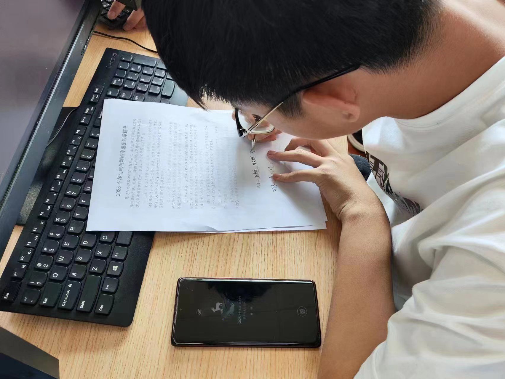 为有效预防和遏制电信诈骗案件发生,机电工程学院于9月13号组织全体学生以签订不参与电信网络诈骗犯罪承诺书的形式,提醒警示同学们。