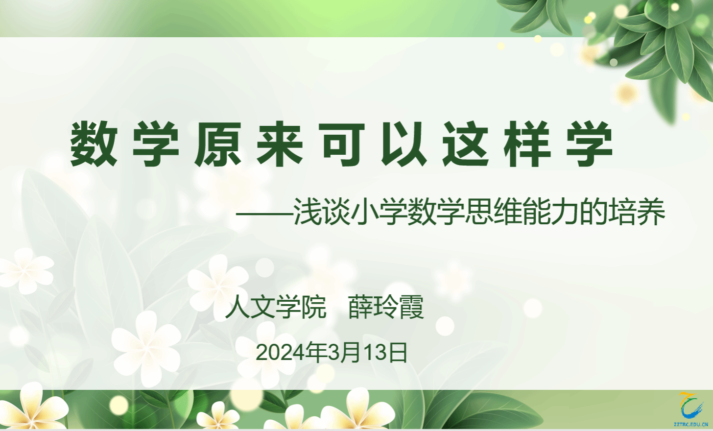 “为人师”与“为人母”,是学生的引路人,更是孩子的陪伴者。两种角色交叠,在家庭要承担更多的教育责任和奉献,是我们做老师的真实写照。在第五个国际数学日来临之际,人文学院薛玲霞副教授为广大教师家长奉献一场“揭开数学的神秘面纱,开启数学的亲子之旅”主题【人文讲堂】,共同探讨数学知识、数学文化、数学智慧。讲座由人文学院院长黄安定主持。国际数学日之所以定在3月14日,是因为这一天是与圆周率数值最接近的日子。