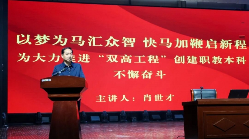 上午,校长肖世才出席启动仪式并作动员讲话,以《以梦为马汇众智 快马加鞭启新程——为大力推进“双高工程”创建职教本科不懈奋斗》为题,立足学校发展全局,对全体教职工提出三点明确要求:一是要观大势、抓机遇,在清醒审视中明晰方向;二是要扬优势、明任务,在务实作为中夯实基础;三是要聚共识、强落实,在协同奋进中开创新局。他强调,全体教师要以此次培训为契机,以学校“双高”建设为重要抓手,凝心聚力、真抓实干,全力推进职教本科创建工作,为学校高质量发展注入强劲动力。