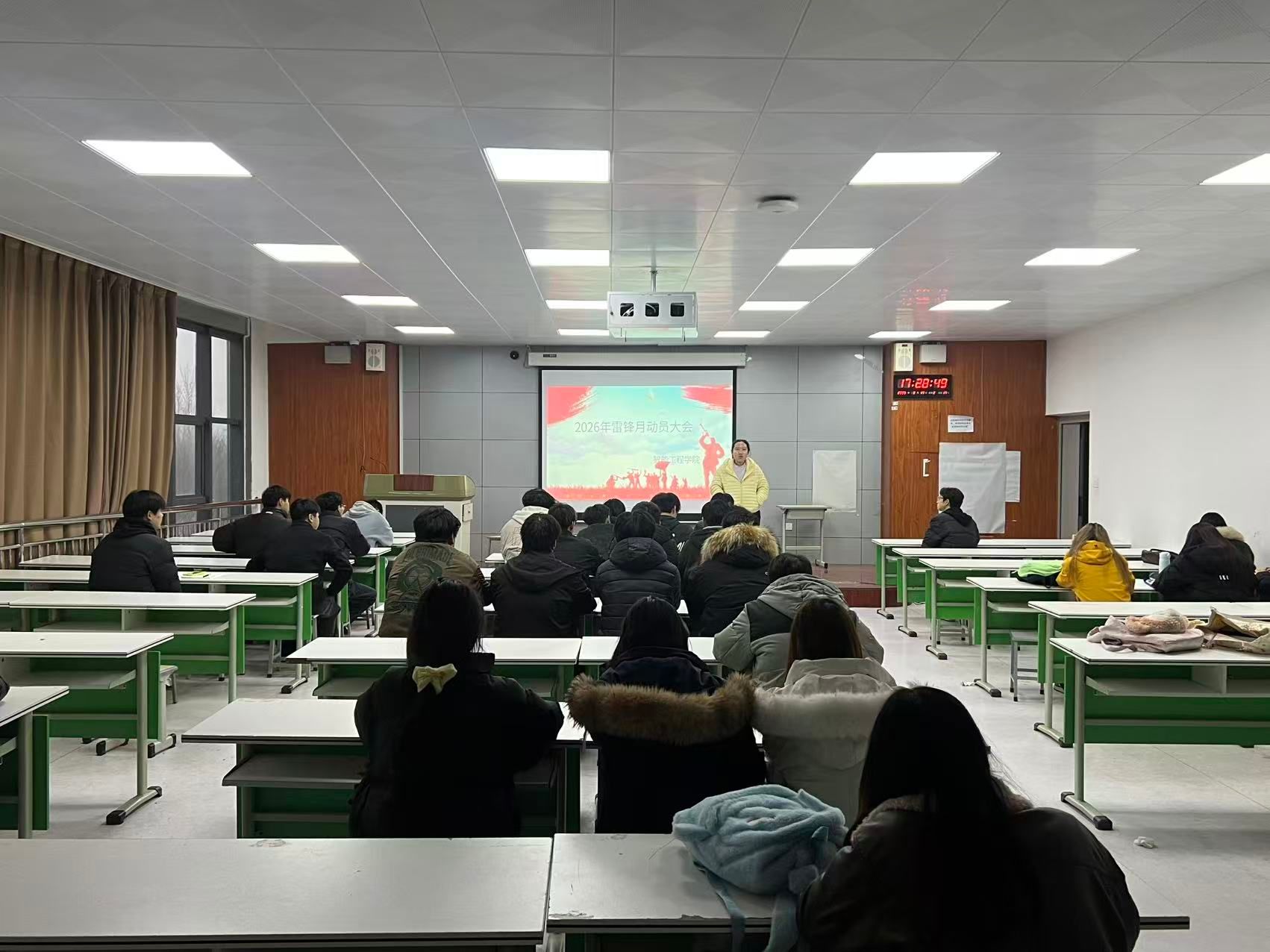 为深入学习贯彻雷锋精神,弘扬“奉献、友爱、互助、进步”的志愿精神,进一步引导青年学子厚植奉献情怀、强化责任担当,近日,智能工程学院组织召开2026年雷锋月活动动员大会。学院团总支书记张冰主持会议,全体团支书参加本次动员大会。