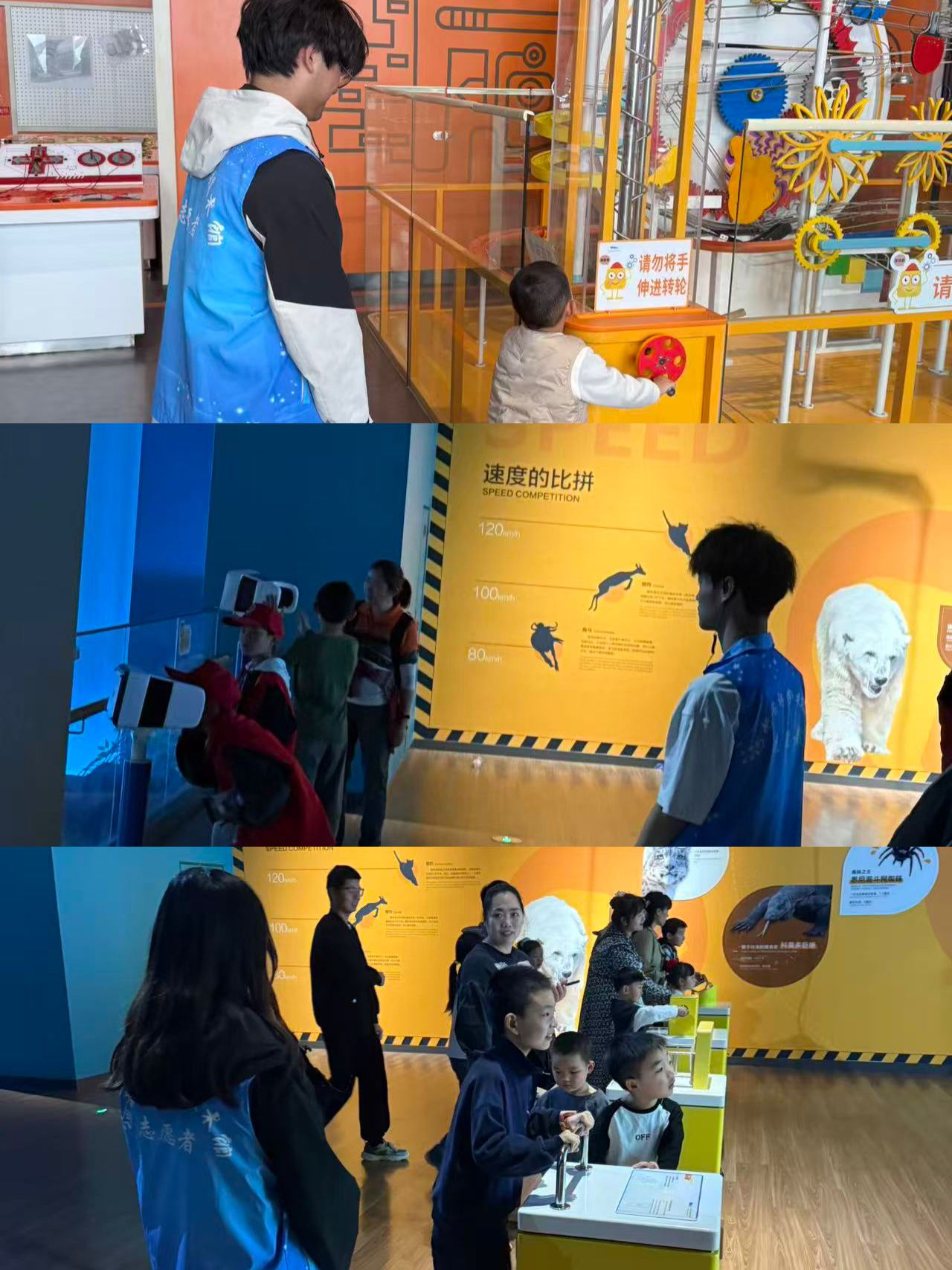 活动中,志愿者们提前接受场馆专业培训,明确服务职责与规范。大家分工协作、各司其职,在场馆入口引导观众有序入场、核验门票,耐心解答观众关于参观路线、展品展区的咨询;在各展厅协助工作人员维护现场秩序,引导观众文明参观、爱护科普展品;在科普互动区域,贴心帮助游客体验科普项目,传递科学知识。