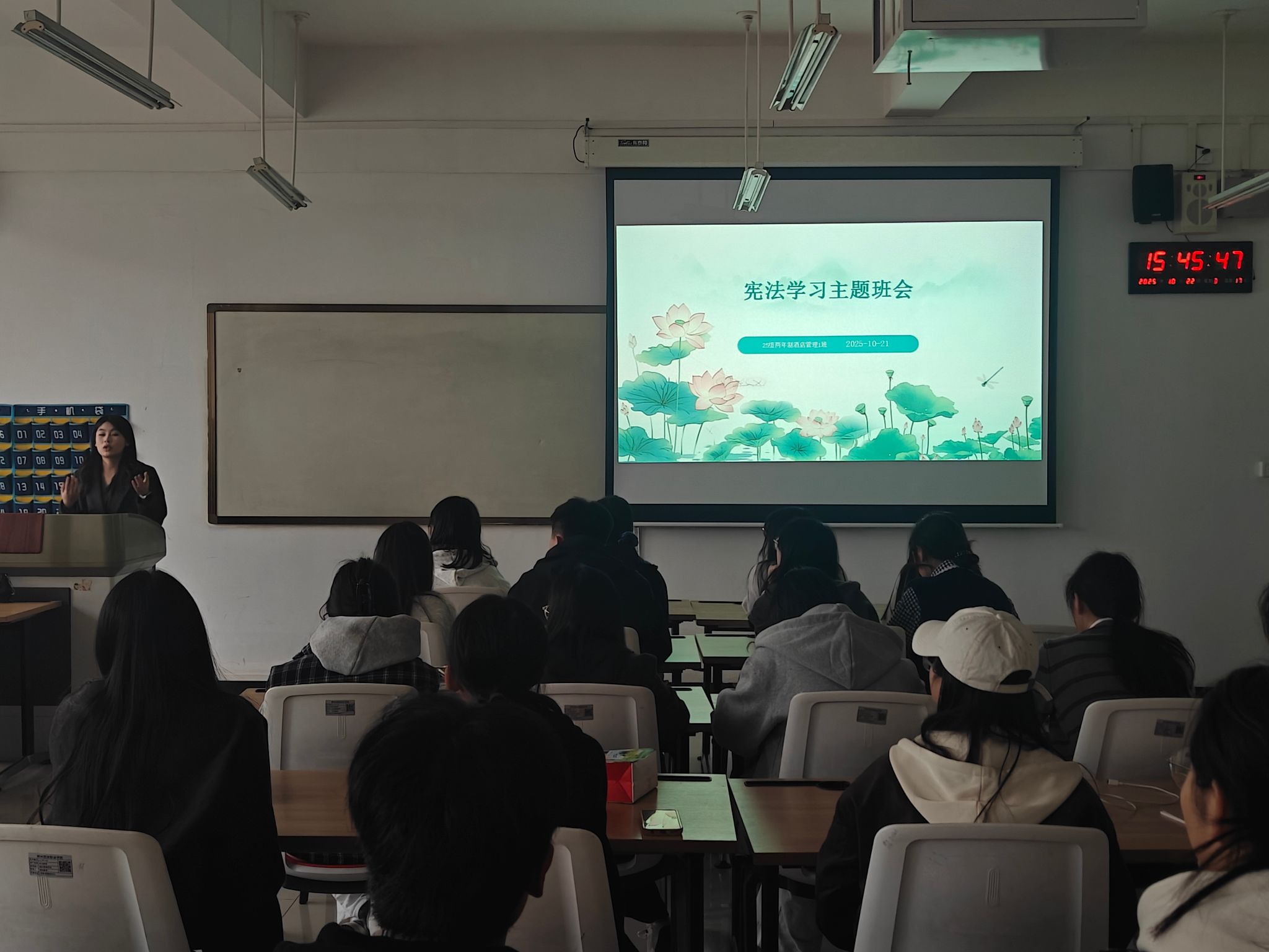 为深入贯彻落实宪法宣传教育要求,帮助学生筑牢法治思想根基,引导青年树立尊法守法意识,酒店管理学院于本周召开“宪法学习”主题班会。