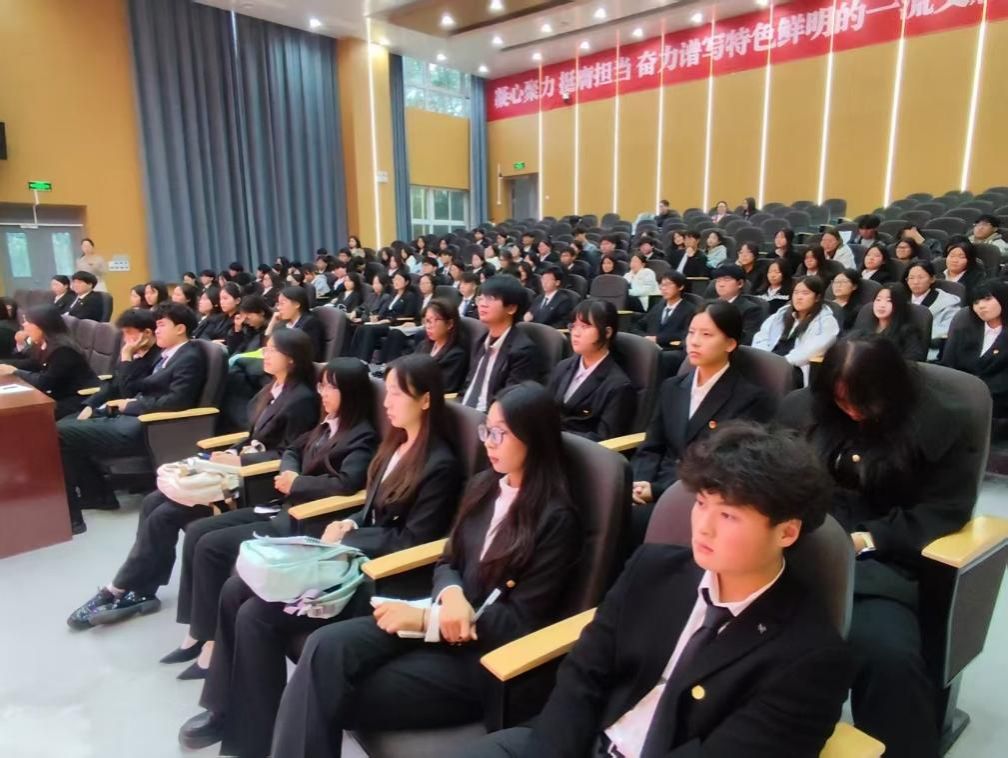 为了切实保障学生的基本医疗权益,宣传驻郑大中专院校学生居民医疗保险政策,酒店管理学院在敏行楼⼩礼堂召开由王慧茹老师主讲的“医保参保进校园 健康守护伴青春”医保政策宣讲会。