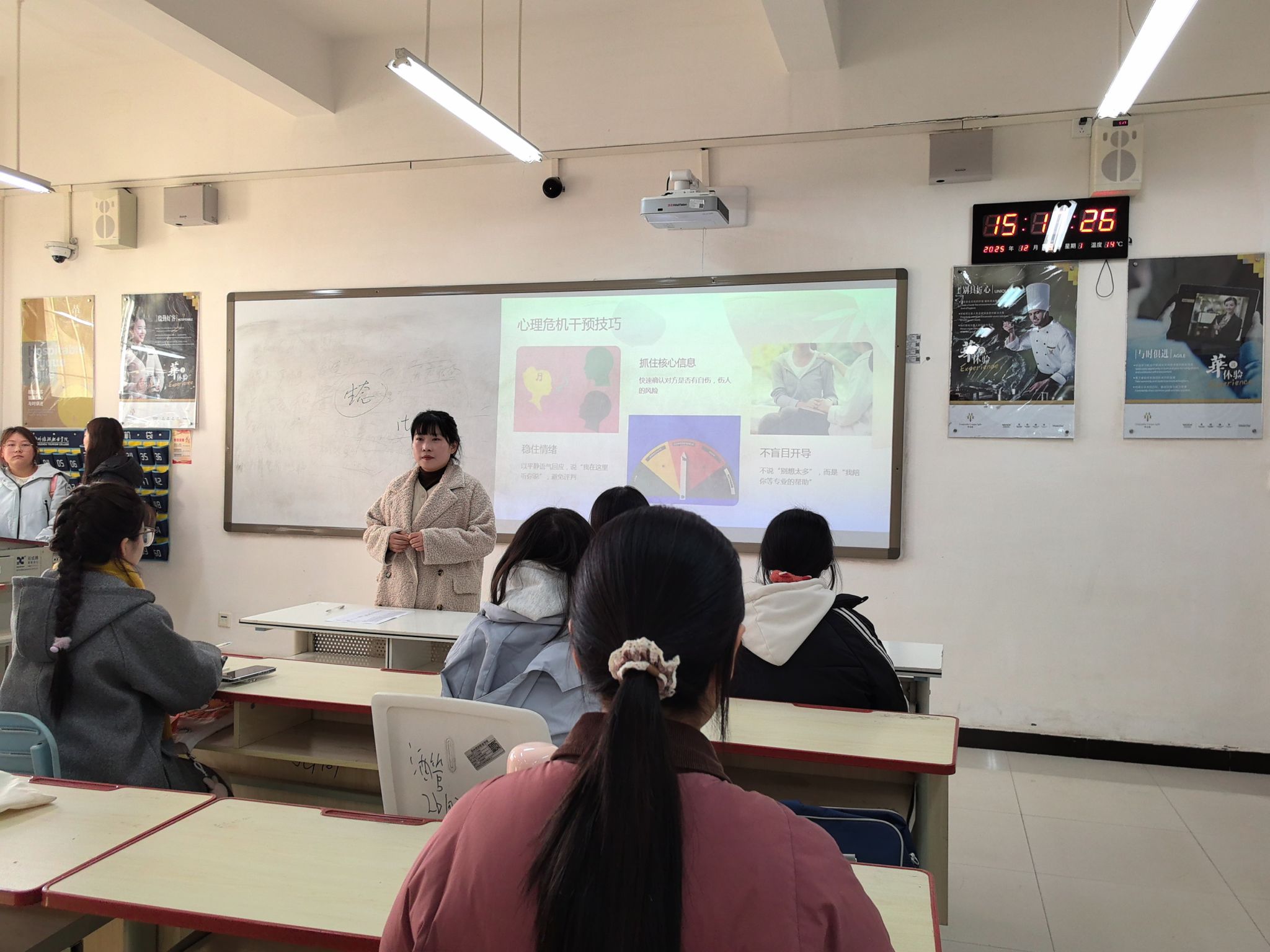 为切实强化班级心理健康教育力量,提升心理委员专业素养与实践能力,充分发挥其在班级心理关怀中的桥梁纽带作用,酒店管理学院于12月15日组织召开“成为心灵守护者”心理委员培训会,学院全体班级心理委员和心教部成员共同参与培训,培训由闫艳老师主讲。
