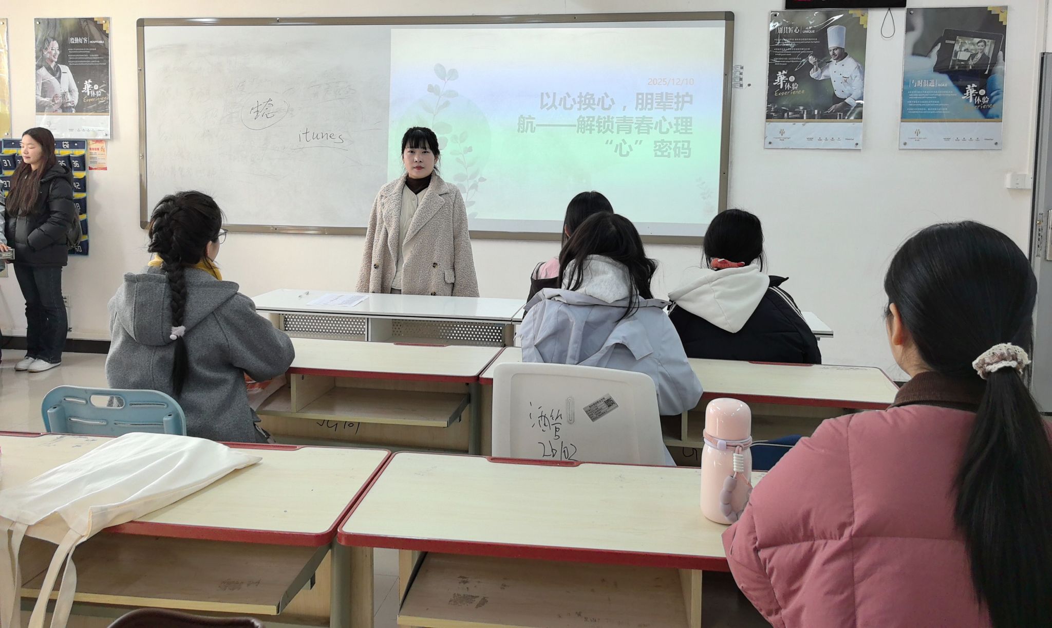 12月15日,酒店管理学院在敏行楼102教室举办“以心换心,朋辈护航——解锁青春心理‘心’密码”朋辈心理沙龙。各班心理委员与宿舍信息员齐聚一堂,共同探索青春期心理成长议题,学习朋辈支持的专业方法与沟通艺术。