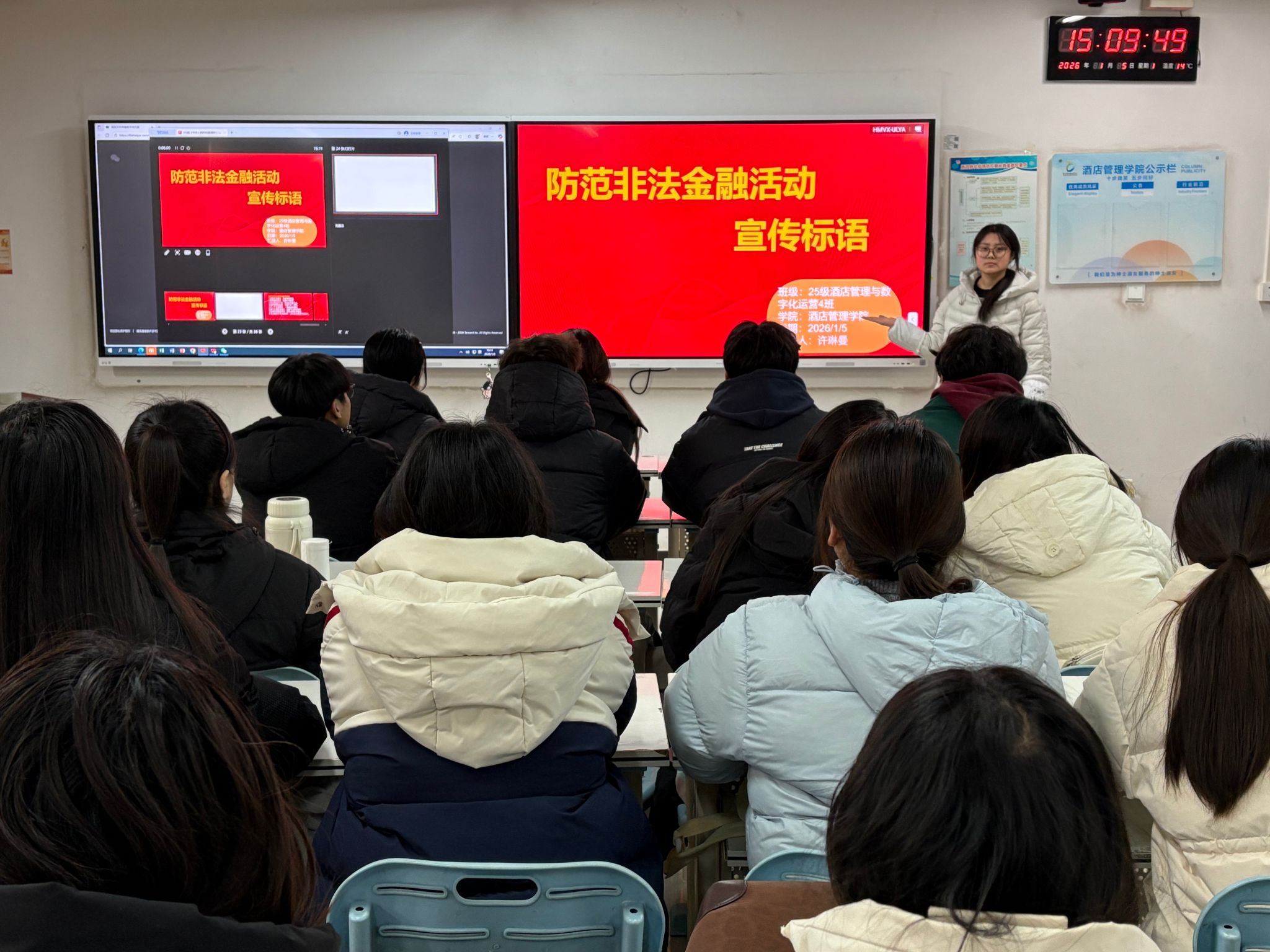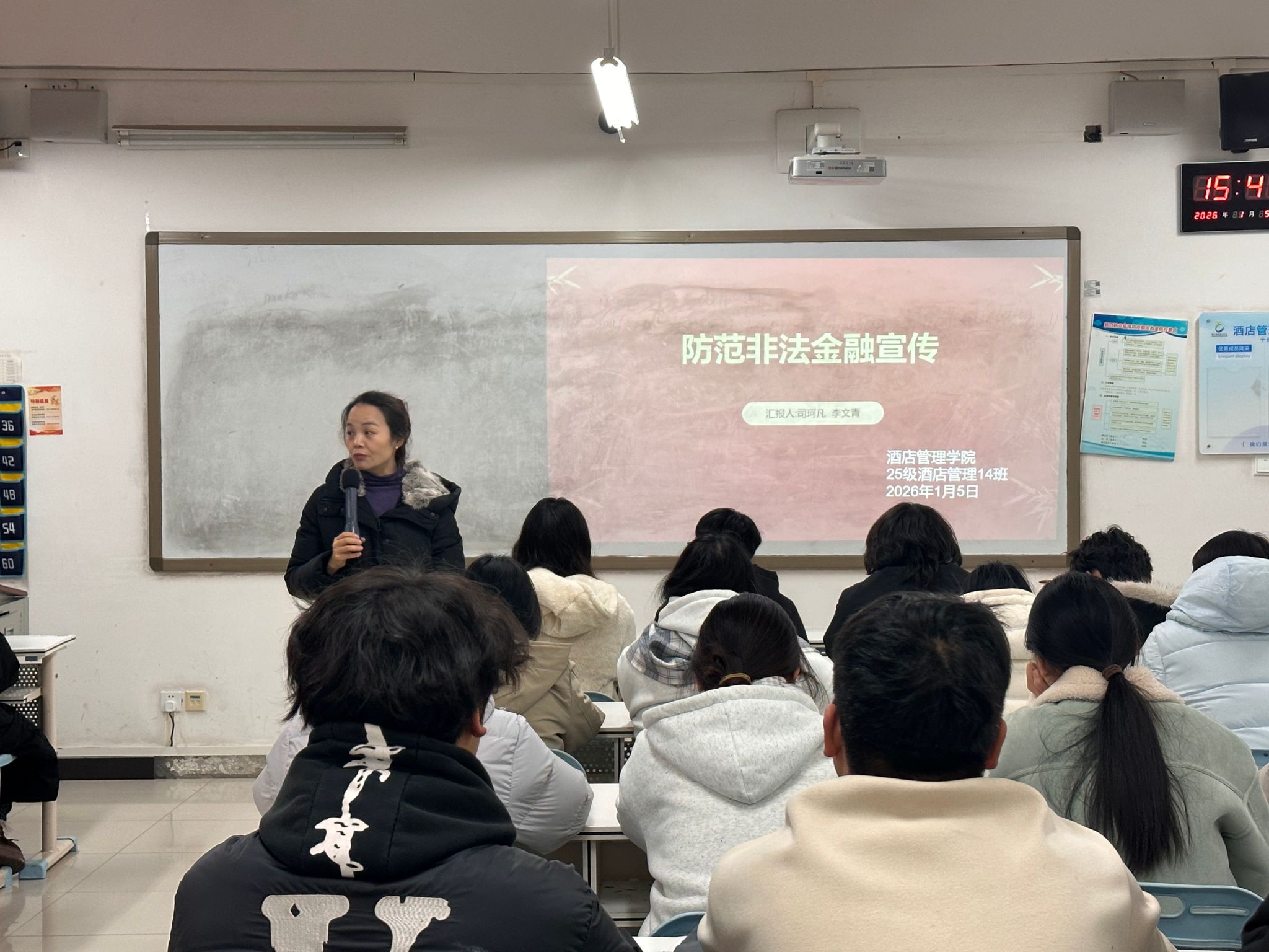 为了切实提升学生群体对非法金融活动的辨别能力和防范意识,筑牢校园金融安全防线,酒店管理学院于本周在敏行楼组织召开“防范非法金融活动”的主题班会。