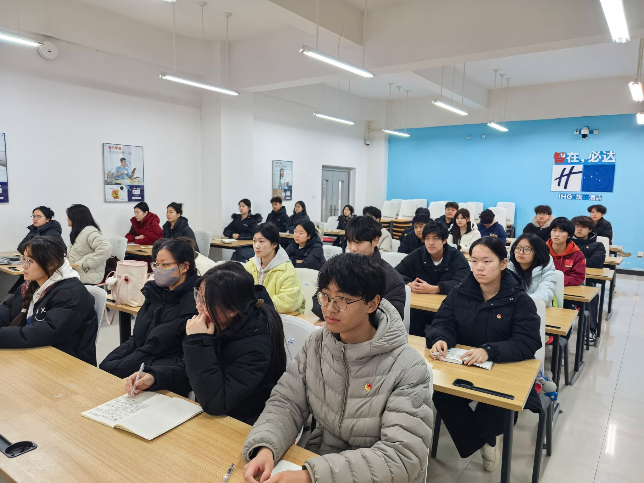为总结本学期工作成果,规划后续团学发展方向,酒店管理学院于1月6日召开2025-2026学年第一学期第十次团学会议。酒店管理学院副书记侯宁波、韩瑞新老师出席会议,各班班长及团学各部门学生工作人员共同参会。