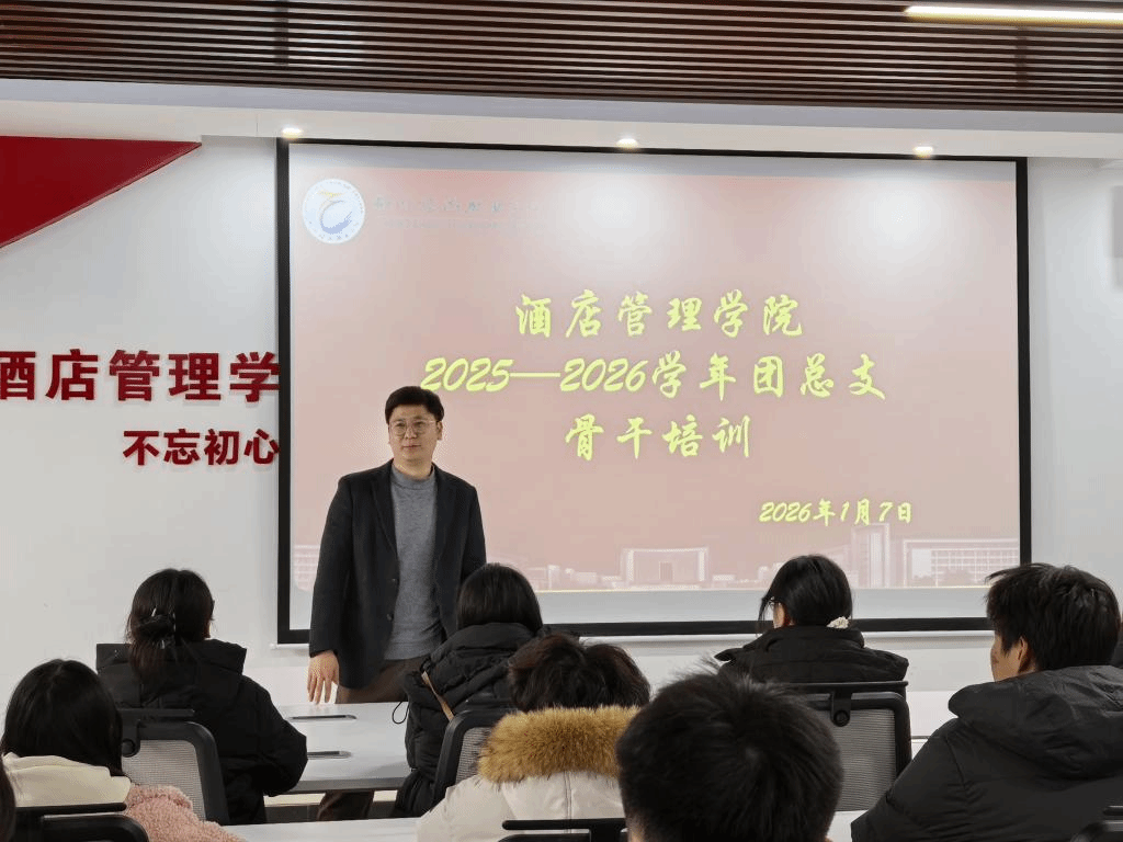 为强化团学骨干队伍建设,提升基层团组织工作效能,1月7日,酒店管理学院团总支以“强基固本提能力,青春担当建新功”为主题,组织开展团总支骨干培训,酒店管理学院副书记侯宁波出席会议,各部门部长、团总支骨干齐聚一堂,共学共进。