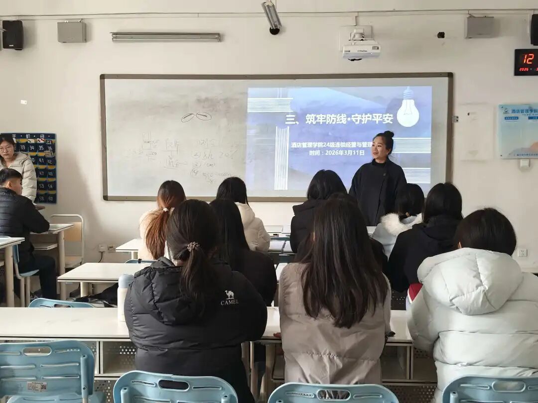 为切实守护学生财产安全,提升全体同学防范电信网络诈骗的意识与识别能力,酒店管理学院于本周在敏行楼召开 “筑牢防线・守护平安” 反诈骗教育主题班会。