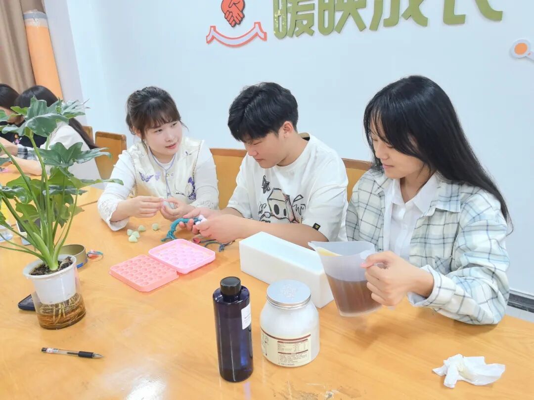 活动现场气氛温暖而沉静,同学们在动手创作中专注当下、觉察情绪。一位参与同学分享道:“把烦恼写在纸上再亲手撕碎的那一刻,感觉心里的负担真的轻了很多。以后每次洗手看到自己做的皂,都会提醒自己洗去烦恼。”活动不仅让大家体验了手工创作的乐趣,更在潜移默化中传递了积极的心理暗示。闫艳老师表示,手作疗愈的关键在于将无形的压力转化为可触摸、可改变的具体形态,从而实现自我对话与情绪释放。